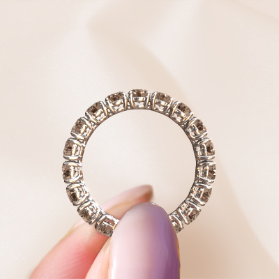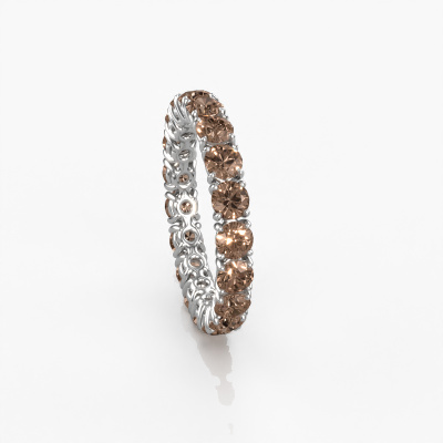 Deze aanschuifring heeft de naam Vivienne 3.4, dit type aanschuifring noemen we een eternity ring, hierbij worden volledig rondom de aanschuifring edelstenen gezet. Deze aanschuifring uitgevoerd in 14 Carat witgoud heeft allemaal kleine bruine diamanten van 2.700 crt. De schitterende bruine diamanten zijn allen identiek qua grootte en worden rondom in de band van de aanschuifring geplaatst. Alle bruine diamanten worden zeer zorgvuldig geselecteerd, juist omdat ze zo identiek mogelijk moeten zijn om het beste resultaat te creëren op deze ring. Onze goudsmid plaatst alle bruine diamanten heel precies met de hand worden geplaatst, en daardoor kan het eternity effect versterkt worden. Dit is de passie die onze goudsmeden drijft: het creëren van de perfecte ring. Dat is het mooie van ons ambacht! Het resultaat is een prachtige klassieke witgouden ring, waarin de bruine diamanten eindeloos door lijken te lopen. Het perfecte symbool voor jouw oneindige liefde voor haar! Hoe bijzonder is dat!Ben je gebonden aan een bepaald budget? Neem gerust contact met ons op, we adviseren graag over alle mogelijkheden. Sowieso leveren wij alle ringen tegen een prijs die je nergens anders tegen komt, doordat we de ring pas vervaardigen wanneer je deze besteld. Hierdoor kunnen wij je een beste prijs garantie geven.Elke dag worden nieuwe ring ontwerpen toegevoegd aan de site door ons team van talentvolle en gepassioneerde ontwerpers. Hierbij wordt ernaar gestreefd om een zo gevarieerd mogelijke collectie aan te bieden. Heb je bepaalde ideeën voor een ring, neem dan eens contact op voor een offerte. Wij doen je een aanbod wat betreft prijs en kwaliteit waar je geen nee tegen zult kunnen zeggen.Om het voor jou makkelijker te maken kun je ieder besteld sieraad binnen 30 dagen na aflevering eenvoudig weer retour sturen.