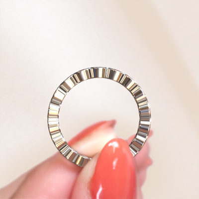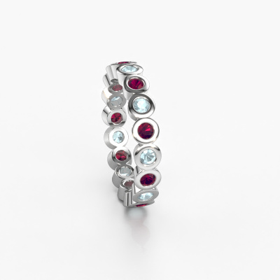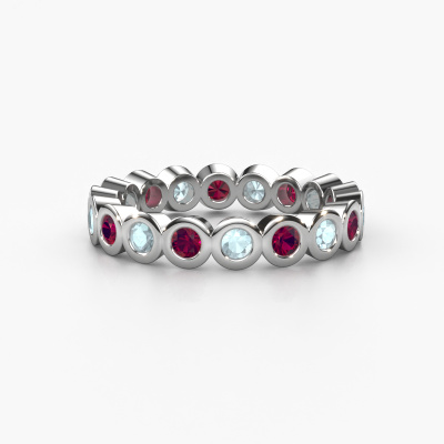 Deze aanschuifring heeft de naam Edwina 2, dit type aanschuifring noemen we een eternity ring, hierbij worden volledig rondom de aanschuifring edelstenen gezet. Deze aanschuifring uitgevoerd in 14 Carat witgoud heeft allemaal kleine rhodoliet van 2.5 mm. De schitterende rhodoliet zijn allen identiek qua grootte en worden rondom in de band van de aanschuifring geplaatst. Alle rhodoliet worden zeer zorgvuldig geselecteerd, juist omdat ze zo identiek mogelijk moeten zijn om het beste resultaat te creëren op deze ring. Onze goudsmid plaatst alle rhodoliet heel precies met de hand worden geplaatst, en daardoor kan het eternity effect versterkt worden. Dit is de passie die onze goudsmeden drijft: het creëren van de perfecte ring. Dat is het mooie van ons ambacht! Het resultaat is een prachtige trendy witgouden ring, waarin de rhodoliet eindeloos door lijken te lopen. Het perfecte symbool voor jouw oneindige liefde voor haar! Hoe bijzonder is dat!Door onze modernste technieken kunnen wij met uiterste precisie prachtige sieraden te ontwerpen en voor jou personaliseren in de hoogste juwelierskwaliteit. Tegelijkertijd zijn onze ringen altijd 30% goedkoper dan bij een andere juwelier. Dit komt doordat alle ringen pas vervaardigd worden op het moment dat deze besteld wordt en we daardoor geen dure voorraden hoeven te hanteren. Mocht je aan een bepaald budget gebonden zijn, kunnen we je graag adviseren welke combinatie je het beste kunt kiezen.Onze talentvolle ontwerpers voegen elke dag nieuwe designs toe aan de website, en werken samen om tot een zo gevarieerd mogelijke collectie te komen met de mooiste sieraden. Wil je een ring laten maken naar eigen ontwerp, neem dan eens contact met ons op voor een offerte. Graag doen wij je een aanbod, waarvan wij denken dat je wat betreft kwaliteit en prijs versteld zult staan.Om het voor jou makkelijker te maken kun je ieder besteld sieraad binnen 30 dagen na aflevering eenvoudig weer retour sturen.
