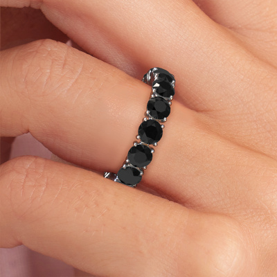 Deze Vivienne 4.0 aanschuifring in 14 Carat witgoud is gezet met zwarte diamant. Deze witgouden aanschuifring, met de naam Vivienne 4.0, maakt jouw ringen collectie compleet. Zoals de naam het al zegt, is het een aanschuifring die naast een andere aanschuifring aan dezelfde vinger geschoven kan worden. Hierdoor kun jij je eigen stijl prachtig weergeven. Een aanschuifring wordt ook wel gekoppeld aan herinneringen, bijvoorbeeld aan een bijzonder persoon of een moment dat je niet meer wilt vergeten. Bij een huwelijksjubileum wordt er ook vaak gekozen voor een aanschuifring bij de trouwringen. Maar ook als stijlvolle mode-accessoire komt deze eternity aanschuifring naast jouw andere ringen helemaal tot zijn recht. Het mooiste cadeau wat je kunt geven, is een zelfontworpen moderne aanschuifring. Ons team van gepassioneerde goudsmeden voegt iedere dag de mooiste nieuwe ontwerpen toe. En elk ontwerp kun je naar jouw wens aanpassen. Zo heb je de keuze welk edelmetaal gebruikt wordt, en kun je de kleur kiezen van de edelstenen. Zo wordt jouw moderne Vivienne 4.0 aanschuifring ontwerp geheel uniek!Omdat wij zelf alle sieraden maken en direct aan jou leveren, kunnen wij je een ring leveren tegen een prijs die je nergens anders zult tegenkomen. Een ring wordt pas gemaakt als we een bestelling krijgen, hierdoor hebben wij geen dure voorraden en kunnen wij jou de beste prijs garanderen. Wij begrijpen dat het kopen van een sieraad online spannend is, en denken graag met je mee over de mogelijkheden binnen jouw budget.Om het voor jou makkelijker te maken kun je ieder besteld sieraad binnen 30 dagen na aflevering eenvoudig weer retour sturen.Heb je vragen over het samenstellen van jouw eternity Vivienne 4.0 eternity ring? Geen enkel probleem. Neem contact met ons op, en ons team van juwelenontwerpers helpt je verder.
