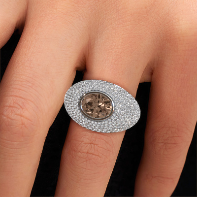 Wil je een mooie, pavé gezette ring met een enkele edelsteen als eyecatcher? Wat denk je dan van deze Armida ring? De Armida ring zie je hier afgebeeld in witgoud met een prachtige 1.80 crt ovale bruine diamant. De bruine diamant wordt met zeer zorgvuldig uitgezocht door onze leveranciers van bruine diamanten, en daarna volgens het oude ambacht door de goudsmid geplaatst in de ring. Deze wordt tot in het kleinste detail afgewerkt en gepolijst totdat een unieke ring is ontstaan met een prachtige bruine diamant. Speciaal voor jou vervaardigd! De Armida wordt speciaal voor jou gemaakt door onze meester goudsmeden in ons eigen atelier.Wat denk je van deze exclusieve witgouden ring? Deze Armida ring stel je helemaal zelf samen met onze configurator. Vervolgens wordt jouw persoonlijke pavé gezette Armida ring met de hand gemaakt door onze goudsmeden. De keuze van het edelmetaal en de edelstenen kun je helemaal naar eigen wens invullen. Heb je bepaalde ideeën voor jouw ring, maar kun je deze niet bij onze opties vinden? Laat het ons dan gerust weten. Wij maken jouw persoonlijke exclusieve ring geheel naar jouw wensen.Omdat wij zelf alle sieraden maken en direct aan jou leveren, kunnen wij je een ring leveren tegen een prijs die je nergens anders zult tegenkomen. Een ring wordt pas gemaakt als we een bestelling krijgen, hierdoor hebben wij geen dure voorraden en kunnen wij jou de beste prijs garanderen. Wij begrijpen dat het kopen van een sieraad online spannend is, en denken graag met je mee over de mogelijkheden binnen jouw budget.Om het voor jou makkelijker te maken kun je ieder besteld sieraad binnen 30 dagen na aflevering eenvoudig weer retour sturen.Heb je een vraag, kijk dan eens bij onze veelgestelde vragen. Kom je er niet uit met de configurator, of heb je specifieke wensen voor jouw persoonlijke Armida ring, aarzel dan niet om contact met ons op te nemen!