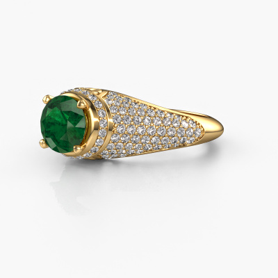 Deze exclusieve gouden ring, met de naam Sharee, is een puur staaltje vakmanschap! De ring is uitgevoerd in 14 Carat goud en is gezet met ronde smaragd van 6.5 mm. De kleinste details zijn door onze goudsmid met veel geduld en passie vervaardigd. Dit echte ambacht vraagt een deskundig oog en vaardige hand om deze ring met uiterste precisie samen te stellen. En dat is precies waar onze goudsmeden enthousiast van worden! De prachtige smaragd worden op een speciale manier gezet, zodat deze nog beter tot zijn recht komen. Dit geeft de ring extra allure. De ring is al uniek door zijn natuurlijke edelsteen, die wij speciaal geselecteerd hebben voor deze Sharee ring. En door jouw keuze voor edelmetaal creëer jij zelf een unieke ring. De speciale sharee ring zoals je hier afgebeeld ziet, kan helemaal naar jouw wensen verpersoonlijkt worden. De mogelijkheden met onze configurator zijn zeer uitgebreid, maar mocht je toch iets aan jouw persoonlijke sharee ring willen aanpassen wat niet als optie geboden wordt, dan kun je altijd contact met ons opnemen.Omdat wij zelf alle sieraden maken en direct aan jou leveren, kunnen wij je een ring leveren tegen een prijs die je nergens anders zult tegenkomen. Een ring wordt pas gemaakt als we een bestelling krijgen, hierdoor hebben wij geen dure voorraden en kunnen wij jou de beste prijs garanderen. Wij begrijpen dat het kopen van een sieraad online spannend is, en denken graag met je mee over de mogelijkheden binnen jouw budget.Om het voor jou makkelijker te maken kun je ieder besteld sieraad binnen 30 dagen na aflevering eenvoudig weer retour sturen.Heb je misschien nog vragen? Wil je een bestaand ontwerp aanpassen met je eigen ideeën? Ook dan neem je contact met ons op. Ons team van vakmensen dient je graag van advies bij het creëren van jouw exclusief droom juweel.