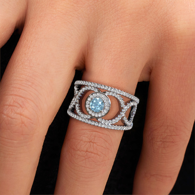 Deze exclusieve platina ring, met de naam Regina, is een puur staaltje vakmanschap! De ring is uitgevoerd in platina en is gezet met ronde blauwe lab grown diamant van 4.2 mm. De kleinste details zijn door onze goudsmid met veel geduld en passie vervaardigd. Dit echte ambacht vraagt een deskundig oog en vaardige hand om deze ring met uiterste precisie samen te stellen. En dat is precies waar onze goudsmeden enthousiast van worden! De prachtige blauwe lab grown diamanten worden op een speciale manier gezet, zodat deze nog beter tot zijn recht komen. Dit geeft de ring extra allure. De ring is al uniek door zijn natuurlijke edelsteen, die wij speciaal geselecteerd hebben voor deze Regina ring. En door jouw keuze voor edelmetaal creëer jij zelf een unieke ring.