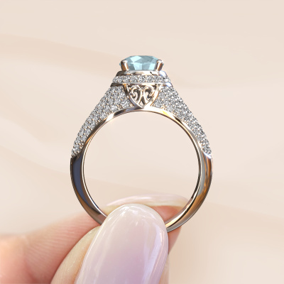 Deze exclusieve witgouden ring, met de naam Sharee, is een puur staaltje vakmanschap! De ring is uitgevoerd in 14 Carat witgoud en is gezet met ronde aquamarijn van 6.5 mm. De kleinste details zijn door onze goudsmid met veel geduld en passie vervaardigd. Dit echte ambacht vraagt een deskundig oog en vaardige hand om deze ring met uiterste precisie samen te stellen. En dat is precies waar onze goudsmeden enthousiast van worden! De prachtige aquamarijn worden op een speciale manier gezet, zodat deze nog beter tot zijn recht komen. Dit geeft de ring extra allure. De ring is al uniek door zijn natuurlijke edelsteen, die wij speciaal geselecteerd hebben voor deze Sharee ring. En door jouw keuze voor edelmetaal creëer jij zelf een unieke ring. De speciale sharee ring zoals je hier afgebeeld ziet, kan helemaal naar jouw wensen verpersoonlijkt worden. De mogelijkheden met onze configurator zijn zeer uitgebreid, maar mocht je toch iets aan jouw persoonlijke sharee ring willen aanpassen wat niet als optie geboden wordt, dan kun je altijd contact met ons opnemen.Omdat wij zelf alle sieraden maken en direct aan jou leveren, kunnen wij je een ring leveren tegen een prijs die je nergens anders zult tegenkomen. Een ring wordt pas gemaakt als we een bestelling krijgen, hierdoor hebben wij geen dure voorraden en kunnen wij jou de beste prijs garanderen. Wij begrijpen dat het kopen van een sieraad online spannend is, en denken graag met je mee over de mogelijkheden binnen jouw budget.Om het voor jou makkelijker te maken kun je ieder besteld sieraad binnen 30 dagen na aflevering eenvoudig weer retour sturen.Heb je misschien nog vragen? Wil je een bestaand ontwerp aanpassen met je eigen ideeën? Ook dan neem je contact met ons op. Ons team van vakmensen dient je graag van advies bij het creëren van jouw exclusief droom juweel.