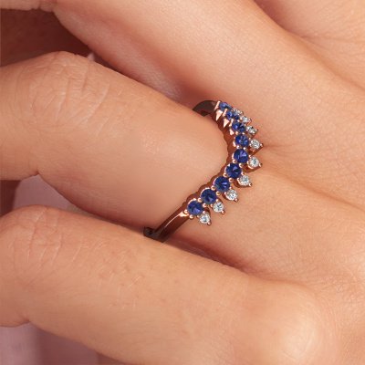 Deze Vivian B aanschuifring in 14 Carat rosé goud is gezet met saffier. Deze rosé gouden aanschuifring, met de naam Vivian B, maakt jouw ringen collectie compleet. Zoals de naam het al zegt, is het een aanschuifring die naast een andere aanschuifring aan dezelfde vinger geschoven kan worden. Hierdoor kun jij je eigen stijl prachtig weergeven. Een aanschuifring wordt ook wel gekoppeld aan herinneringen, bijvoorbeeld aan een bijzonder persoon of een moment dat je niet meer wilt vergeten. Bij een huwelijksjubileum wordt er ook vaak gekozen voor een aanschuifring bij de trouwringen. Maar ook als stijlvolle mode-accessoire komt deze fashionable aanschuifring naast jouw andere ringen helemaal tot zijn recht. Jouw persoonlijke fashionable Vivian B aanschuifring stel je zelf samen, en wordt met liefde en passie door onze goudsmeden vervaardigd. Wil je liever een andere optie dan de hier afgebeelde rosé gouden Vivian B aanschuifring? Dan heb je via de configurator keuze uit diverse mogelijkheden. Kom je er niet helemaal uit, dan dienen wij je graag van advies!Onze goudsmeden vervaardigen pas je ring, zodra je deze besteld hebt. We hebben geen voorraden. Het voordeel hiervan is dat we de voorraad niet door hoeven te berekenen in de prijs, en wij daardoor sieraden kunnen leveren tegen een bijzonder lage prijs.Om het voor jou makkelijker te maken kun je ieder besteld sieraad binnen 30 dagen na aflevering eenvoudig weer retour sturen.Heb je vragen over het samenstellen van jouw fashionable Vivian B fashionable ring? Geen enkel probleem. Neem contact met ons op, en ons team van juwelenontwerpers helpt je verder.