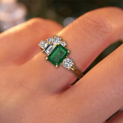 Hoe zou jij jouw stijl omschrijven? Hou jij van iets dat net anders dan anders is? Deze fashionable gouden ring is een prachtige ring, die je zelf naar jouw of haar smaak verder kunt aanpassen. In deze ring is smaragd verwerkt. Deze smaragd zijn zorgvuldig geselecteerd, want wij vinden dat op jouw ring alleen de mooiste edelsteen mag schitteren, toch? Onze goudsmid vervaardigt jouw ring beneden in ons eigen atelier, en plaatst de smaragd met uiterste precisie in de ring. Vervolgens wordt deze bijgewerkt en gepolijst totdat het resultaat zichtbaar is: de perfecte ring, die getuigt van een vrouw met smaak!Jouw persoonlijke fashionable Sabina ring stel je zelf samen, en wordt met liefde en passie door onze goudsmeden vervaardigd. Wil je liever een andere optie dan de hier afgebeelde gouden Sabina ring? Dan heb je via de configurator keuze uit diverse mogelijkheden. Kom je er niet helemaal uit, dan dienen wij je graag van advies!Wil je jouw Sabina fashionable ring nog persoonlijker maken? Dan kun je deze natuurlijk laten graveren. Geef dit aan bij je bestelling. Omdat wij zelf alle sieraden maken en direct aan jou leveren, kunnen wij je een ring leveren tegen een prijs die je nergens anders zult tegenkomen. Een ring wordt pas gemaakt als we een bestelling krijgen, hierdoor hebben wij geen dure voorraden en kunnen wij jou de beste prijs garanderen. Wij begrijpen dat het kopen van een sieraad online spannend is, en denken graag met je mee over de mogelijkheden binnen jouw budget.Om het voor jou makkelijker te maken kun je ieder besteld sieraad binnen 30 dagen na aflevering eenvoudig weer retour sturen.Heb je vragen? Neem dan gerust contact met ons op. Onze goudsmeden voorzien je graag van advies bij het samenstellen van jouw eigen Sabina trendy ring.