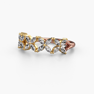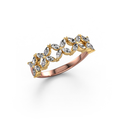 Deze Bree ring in 14 Carat rosé goud is gezet met diamant. Deze rosé gouden aanschuifring, met de naam Bree, maakt jouw ringen collectie compleet. Zoals de naam het al zegt, is het een ring die naast een andere ring aan dezelfde vinger geschoven kan worden. Hierdoor kun jij je eigen stijl prachtig weergeven. Een aanschuifring wordt ook wel gekoppeld aan herinneringen, bijvoorbeeld aan een bijzonder persoon of een moment dat je niet meer wilt vergeten. Bij een huwelijksjubileum wordt er ook vaak gekozen voor een aanschuifring bij de trouwringen. Maar ook als stijlvolle mode-accessoire komt deze flower ring naast jouw andere ringen helemaal tot zijn recht. Het mooie aan deze flower ring is, dat je deze helemaal zelf kunt samenstellen. Jouw stijl, jouw keuze, jouw ring. Bovendien wordt jouw vintage rosé gouden ring met de hand gemaakt, met eerlijke materialen! Met onze configurator pas je dit gemakkelijk aan.Door het gebruik van de modernste technieken, gecombineerd met ambachtelijk vakmanschap kunnen wij alle ringen zelf in ons atelier maken. Iedere ring wordt pas gemaakt nadat deze besteld is. Dit heeft als bijkomend voordeel dat we kunnen leveren tegen een prijs die je nergens anders tegenkomt.Om het voor jou makkelijker te maken kun je ieder besteld sieraad binnen 30 dagen na aflevering eenvoudig weer retour sturen.Heb je vragen over het samenstellen van jouw flower Bree flower ring? Geen enkel probleem. Neem contact met ons op, en ons team van juwelenontwerpers helpt je verder.