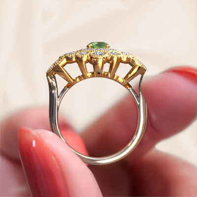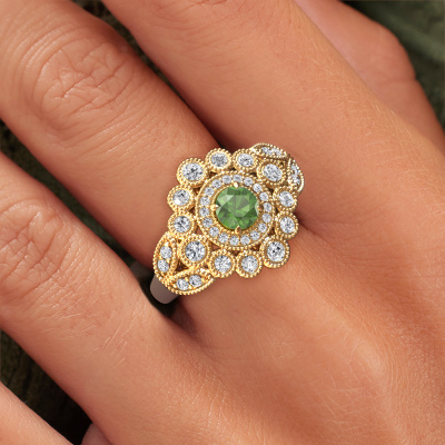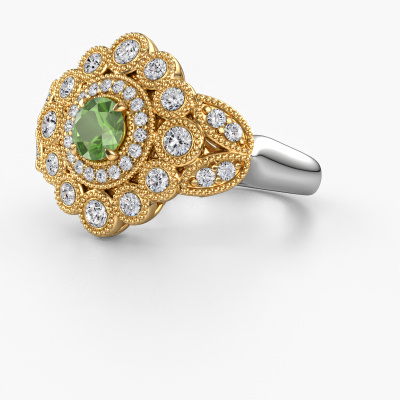 Wordt jouw aandacht ook altijd getrokken door vintage artikelen? Dan kun je er vrijwel zeker van zijn dat deze witgouden ring helemaal bij jou past! Een nieuw model, gebaseerd op vintage motieven. Ietwat dromerig, een prachtig ontwerp! Zeker als je deze nog verder aanpast naar jouw smaak. In deze flower ring zijn prachtige toermalijn groen verwerkt. Zoals je ziet kun je zelf voor een edelsteen kiezen die bij jouw stijl past. Iedere edelsteen wordt zorgvuldig geselecteerd bij onze handelaren wereldwijd, onze goudsmid wil alleen de mooiste edelstenen op een juweel verwerken. Het is immers de kroon op zijn werk!Onze goudsmeden vervaardigen met veel passie en zorgvuldigheid jouw ring op maat en naar eigen wens. De witgouden ring zoals hier is afgebeeld, kan naar jouw wens worden aangepast met de configurator. Heb je bepaalde ideeën die je met de configurator niet kunt toepassen, dan kun je dit altijd opnemen met onze sieradenontwerpers. Met vragen kun je uiteraard ook altijd terecht.Omdat wij zelf alle sieraden maken en direct aan jou leveren, kunnen wij je een ring leveren tegen een prijs die je nergens anders zult tegenkomen. Een ring wordt pas gemaakt als we een bestelling krijgen, hierdoor hebben wij geen dure voorraden en kunnen wij jou de beste prijs garanderen. Wij begrijpen dat het kopen van een sieraad online spannend is, en denken graag met je mee over de mogelijkheden binnen jouw budget.Om het voor jou makkelijker te maken kun je ieder besteld sieraad binnen 30 dagen na aflevering eenvoudig weer retour sturen.Wil je wat meer informatie hebben over de flower Elia ring? Kijk eens bij onze veelgestelde vragen. Uiteraard kun je ook altijd contact met ons team van gepassioneerde goudsmeden opnemen. Graag stellen wij jouw droom juweel samen voor je!
