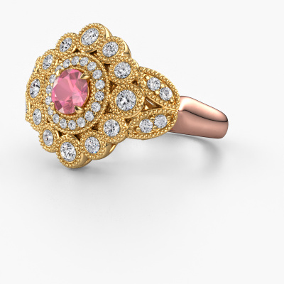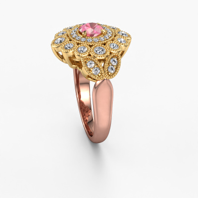 Wordt jouw aandacht ook altijd getrokken door vintage artikelen? Dan kun je er vrijwel zeker van zijn dat deze rosé gouden ring helemaal bij jou past! Een nieuw model, gebaseerd op vintage motieven. Ietwat dromerig, een prachtig ontwerp! Zeker als je deze nog verder aanpast naar jouw smaak. In deze flower ring zijn prachtige toermalijn pink verwerkt. Zoals je ziet kun je zelf voor een edelsteen kiezen die bij jouw stijl past. Iedere edelsteen wordt zorgvuldig geselecteerd bij onze handelaren wereldwijd, onze goudsmid wil alleen de mooiste edelstenen op een juweel verwerken. Het is immers de kroon op zijn werk!Onze goudsmeden vervaardigen met veel passie en zorgvuldigheid jouw ring op maat en naar eigen wens. De rosé gouden ring zoals hier is afgebeeld, kan naar jouw wens worden aangepast met de configurator. Heb je bepaalde ideeën die je met de configurator niet kunt toepassen, dan kun je dit altijd opnemen met onze sieradenontwerpers. Met vragen kun je uiteraard ook altijd terecht.Omdat wij zelf alle sieraden maken en direct aan jou leveren, kunnen wij je een ring leveren tegen een prijs die je nergens anders zult tegenkomen. Een ring wordt pas gemaakt als we een bestelling krijgen, hierdoor hebben wij geen dure voorraden en kunnen wij jou de beste prijs garanderen. Wij begrijpen dat het kopen van een sieraad online spannend is, en denken graag met je mee over de mogelijkheden binnen jouw budget.Om het voor jou makkelijker te maken kun je ieder besteld sieraad binnen 30 dagen na aflevering eenvoudig weer retour sturen.Wil je wat meer informatie hebben over de flower Elia ring? Kijk eens bij onze veelgestelde vragen. Uiteraard kun je ook altijd contact met ons team van gepassioneerde goudsmeden opnemen. Graag stellen wij jouw droom juweel samen voor je!