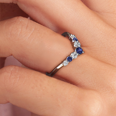 Deze Imani B aanschuifring in 14 Carat witgoud is gezet met saffier. Deze witgouden aanschuifring, met de naam Imani B, maakt jouw ringen collectie compleet. Zoals de naam het al zegt, is het een aanschuifring die naast een andere aanschuifring aan dezelfde vinger geschoven kan worden. Hierdoor kun jij je eigen stijl prachtig weergeven. Een aanschuifring wordt ook wel gekoppeld aan herinneringen, bijvoorbeeld aan een bijzonder persoon of een moment dat je niet meer wilt vergeten. Bij een huwelijksjubileum wordt er ook vaak gekozen voor een aanschuifring bij de trouwringen. Maar ook als stijlvolle mode-accessoire komt deze fraaie aanschuifring naast jouw andere ringen helemaal tot zijn recht. Onze goudsmeden vervaardigen met veel passie en zorgvuldigheid jouw aanschuifring op maat en naar eigen wens. De witgouden aanschuifring zoals hier is afgebeeld, kan naar jouw wens worden aangepast met de configurator. Heb je bepaalde ideeën die je met de configurator niet kunt toepassen, dan kun je dit altijd opnemen met onze sieradenontwerpers. Met vragen kun je uiteraard ook altijd terecht.Door het gebruik van de modernste technieken, gecombineerd met ambachtelijk vakmanschap kunnen wij alle ringen zelf in ons atelier maken. Iedere ring wordt pas gemaakt nadat deze besteld is. Dit heeft als bijkomend voordeel dat we kunnen leveren tegen een prijs die je nergens anders tegenkomt.Om het voor jou makkelijker te maken kun je ieder besteld sieraad binnen 30 dagen na aflevering eenvoudig weer retour sturen.Heb je vragen over het samenstellen van jouw fraaie Imani B fraaie ring? Geen enkel probleem. Neem contact met ons op, en ons team van juwelenontwerpers helpt je verder.