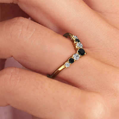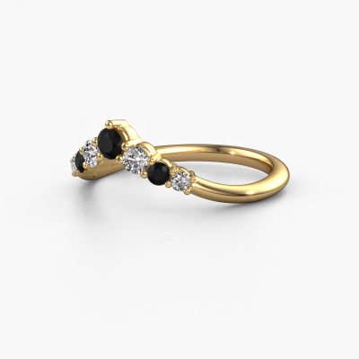 Deze Imani B aanschuifring in 14 Carat goud is gezet met zwarte diamant. Deze gouden aanschuifring, met de naam Imani B, maakt jouw ringen collectie compleet. Zoals de naam het al zegt, is het een aanschuifring die naast een andere aanschuifring aan dezelfde vinger geschoven kan worden. Hierdoor kun jij je eigen stijl prachtig weergeven. Een aanschuifring wordt ook wel gekoppeld aan herinneringen, bijvoorbeeld aan een bijzonder persoon of een moment dat je niet meer wilt vergeten. Bij een huwelijksjubileum wordt er ook vaak gekozen voor een aanschuifring bij de trouwringen. Maar ook als stijlvolle mode-accessoire komt deze fraaie aanschuifring naast jouw andere ringen helemaal tot zijn recht. Onze goudsmeden vervaardigen met veel passie en zorgvuldigheid jouw aanschuifring op maat en naar eigen wens. De gouden aanschuifring zoals hier is afgebeeld, kan naar jouw wens worden aangepast met de configurator. Heb je bepaalde ideeën die je met de configurator niet kunt toepassen, dan kun je dit altijd opnemen met onze sieradenontwerpers. Met vragen kun je uiteraard ook altijd terecht.Door het gebruik van de modernste technieken, gecombineerd met ambachtelijk vakmanschap kunnen wij alle ringen zelf in ons atelier maken. Iedere ring wordt pas gemaakt nadat deze besteld is. Dit heeft als bijkomend voordeel dat we kunnen leveren tegen een prijs die je nergens anders tegenkomt.Om het voor jou makkelijker te maken kun je ieder besteld sieraad binnen 30 dagen na aflevering eenvoudig weer retour sturen.Heb je vragen over het samenstellen van jouw fraaie Imani B fraaie ring? Geen enkel probleem. Neem contact met ons op, en ons team van juwelenontwerpers helpt je verder.