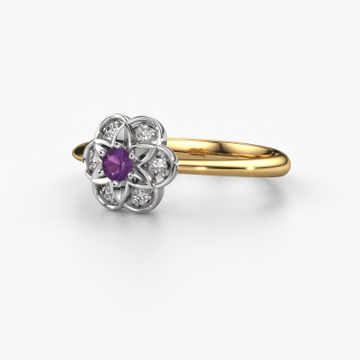 Hoe zou jij jouw stijl omschrijven? Hou jij van iets dat net anders dan anders is? Deze flower gouden ring is een prachtige ring, die je zelf naar jouw of haar smaak verder kunt aanpassen. In deze ring is amethist verwerkt. Deze amethisten zijn zorgvuldig geselecteerd, want wij vinden dat op jouw ring alleen de mooiste edelsteen mag schitteren, toch? Onze goudsmid vervaardigt jouw ring beneden in ons eigen atelier, en plaatst de amethist met uiterste precisie in de ring. Vervolgens wordt deze bijgewerkt en gepolijst totdat het resultaat zichtbaar is: de perfecte ring, die getuigt van een vrouw met smaak!Zodra je jouw Uma ring hebt ontworpen met onze configurator, gaan onze goudsmeden aan de slag om deze voor je te vervaardigen. Dit gebeurt op ambachtelijke wijze met passie en zorgvuldigheid. Bovendien werken wij met eerlijk gewonnen materialen. Wil je iets aanpassen, dan doe je dat met onze configurator. Heb je specifieke wensen voor jouw Uma ring, maar zie je deze niet als optie staan in de configurator, neem dan contact op met ons team van ervaren ontwerpers.Wil je jouw Uma flower ring nog persoonlijker maken? Dan kun je deze natuurlijk laten graveren. Geef dit aan bij je bestelling. Ben je gebonden aan een bepaald budget? Neem gerust contact met ons op, we adviseren graag over alle mogelijkheden. Sowieso leveren wij alle ringen tegen een prijs die je nergens anders tegen komt, doordat we de ring pas vervaardigen wanneer je deze besteld. Hierdoor kunnen wij je een beste prijs garantie geven.Om het voor jou makkelijker te maken kun je ieder besteld sieraad binnen 30 dagen na aflevering eenvoudig weer retour sturen.Heb je vragen? Neem dan gerust contact met ons op. Onze goudsmeden voorzien je graag van advies bij het samenstellen van jouw eigen Uma trendy ring.