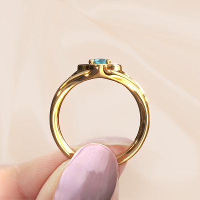Deze betekenisvolle gouden ring Eura is een prachtige ring, gezet met blauw topaas. Voor sommige mensen is een ring een mooie mode-accessoire, maar juist ringen lenen zich speciaal als betekenisvol juweel. Een ring als deze kun je iedere dag dragen en zijn goed te combineren met diverse stijlen. Daarom is het zo mooi om een ring samen te stellen die voor jou een symbolische betekenis heeft. Iedere keer weer word je eraan herinnert als je naar de ring kijkt. Een waardevol persoon die veel voor jou betekent, of betekend heeft. Een herinnering aan een speciaal moment of een speciale dag. Herinneringen die gekoesterd mogen worden en terugkomen in deze ring. Het mooie is dat de materialen die gebruikt worden, het edelmetaal en de edelstenen, ook bedoeld zijn om je leven lang mee te gaan. En zo mogen ook waardevolle herinneringen een leven lang mee gedragen worden!Het mooie aan deze symbolische ring is, dat je deze helemaal zelf kunt samenstellen. Jouw stijl, jouw keuze, jouw ring. Bovendien wordt jouw fantasie gouden ring met de hand gemaakt, met eerlijke materialen! Met onze configurator pas je dit gemakkelijk aan.Omdat wij zelf alle sieraden maken en direct aan jou leveren, kunnen wij je een ring leveren tegen een prijs die je nergens anders zult tegenkomen. Een ring wordt pas gemaakt als we een bestelling krijgen, hierdoor hebben wij geen dure voorraden en kunnen wij jou de beste prijs garanderen. Wij begrijpen dat het kopen van een sieraad online spannend is, en denken graag met je mee over de mogelijkheden binnen jouw budget.Om het voor jou makkelijker te maken kun je ieder besteld sieraad binnen 30 dagen na aflevering eenvoudig weer retour sturen.Nu kan het natuurlijk altijd zijn dat je toch nog vragen hebt, bijvoorbeeld over de configurator. Of wanneer je bepaalde wensen hebt. Aarzel dan niet om contact met ons op te nemen. Wij helpen je graag bij de samenstelling van jouw symbolische Eura ring!