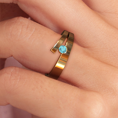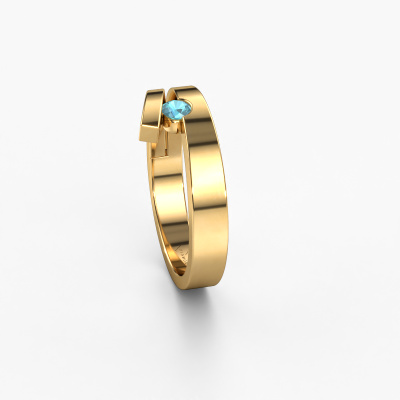 Deze ring heeft de naam Rosario, deze ring uitgevoerd in 14 Carat goud is gezet met blauw topaas ter grootte van 3 mm. Ben je op zoek naar een unieke gouden ring met een moderne uitstraling? Dan is dit een mooie ring, die je zelf naar jouw of haar smaak verder kunt aanpassen. Perfect voor de eigentijdse, moderne vrouw! In deze strakke ring is prachtige blauw topaas verwerkt. Deze is zorgvuldig geselecteerd, want op jouw ring mag alleen de mooiste edelsteen schitteren. Onze goudsmid vervaardigt jouw ring in ons eigen atelier, en plaatst de blauw topaas met uiterste precisie in de ring. Vervolgens wordt deze bijgewerkt en gepolijst totdat het resultaat zichtbaar is: de perfecte ring!Ben je gebonden aan een bepaald budget? Neem gerust contact met ons op, we adviseren graag over alle mogelijkheden. Sowieso leveren wij alle ringen tegen een prijs die je nergens anders tegen komt, doordat we de ring pas vervaardigen wanneer je deze besteld. Hierdoor kunnen wij je een beste prijs garantie geven.