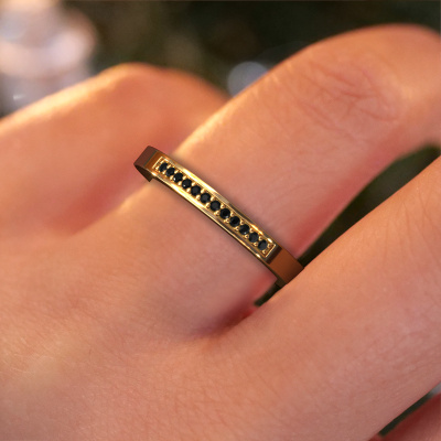 Deze Loes 1 aanschuifring in 14 Carat goud is gezet met zwarte diamant. Deze gouden aanschuifring, met de naam Loes 1, maakt jouw ringen collectie compleet. Zoals de naam het al zegt, is het een aanschuifring die naast een andere aanschuifring aan dezelfde vinger geschoven kan worden. Hierdoor kun jij je eigen stijl prachtig weergeven. Een aanschuifring wordt ook wel gekoppeld aan herinneringen, bijvoorbeeld aan een bijzonder persoon of een moment dat je niet meer wilt vergeten. Bij een huwelijksjubileum wordt er ook vaak gekozen voor een aanschuifring bij de trouwringen. Maar ook als stijlvolle mode-accessoire komt deze half memoire aanschuifring naast jouw andere ringen helemaal tot zijn recht. Jouw persoonlijke half memoire Loes 1 aanschuifring stel je zelf samen, en wordt met liefde en passie door onze goudsmeden vervaardigd. Wil je liever een andere optie dan de hier afgebeelde gouden Loes 1 aanschuifring? Dan heb je via de configurator keuze uit diverse mogelijkheden. Kom je er niet helemaal uit, dan dienen wij je graag van advies!Door onze modernste technieken kunnen wij met uiterste precisie prachtige sieraden te ontwerpen en voor jou personaliseren in de hoogste juwelierskwaliteit. Tegelijkertijd zijn onze ringen altijd 30% goedkoper dan bij een andere juwelier. Dit komt doordat alle ringen pas vervaardigd worden op het moment dat deze besteld wordt en we daardoor geen dure voorraden hoeven te hanteren. Mocht je aan een bepaald budget gebonden zijn, kunnen we je graag adviseren welke combinatie je het beste kunt kiezen.Om het voor jou makkelijker te maken kun je ieder besteld sieraad binnen 30 dagen na aflevering eenvoudig weer retour sturen.Heb je vragen over het samenstellen van jouw half memoire Loes 1 half memoire ring? Geen enkel probleem. Neem contact met ons op, en ons team van juwelenontwerpers helpt je verder.