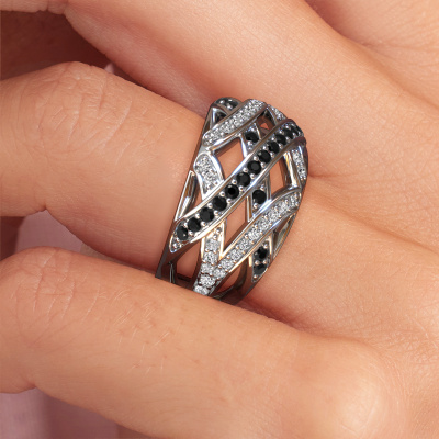 Deze ring heeft de naam Yinthe, deze ring uitgevoerd in 14 Carat witgoud is gezet met zwarte diamant. Ben je op zoek naar een unieke witgouden ring met een fantasie uitstraling? Dan is dit een mooie ring, die je zelf naar jouw of haar smaak verder kunt aanpassen. Perfect voor de eigentijdse, fantasie vrouw! In deze hedendaagse ring is een prachtige zwarte diamant verwerkt. Deze is zorgvuldig geselecteerd, want op jouw ring mag alleen de mooiste edelsteen schitteren. Onze goudsmid vervaardigt jouw ring in ons eigen atelier, en plaatst de zwarte diamant met uiterste precisie in de ring. Vervolgens wordt deze bijgewerkt en gepolijst totdat het resultaat zichtbaar is: de perfecte ring!Door onze modernste technieken kunnen wij met uiterste precisie prachtige sieraden te ontwerpen en voor jou personaliseren in de hoogste juwelierskwaliteit. Tegelijkertijd zijn onze ringen altijd 30% goedkoper dan bij een andere juwelier. Dit komt doordat alle ringen pas vervaardigd worden op het moment dat deze besteld wordt en we daardoor geen dure voorraden hoeven te hanteren. Mocht je aan een bepaald budget gebonden zijn, kunnen we je graag adviseren welke combinatie je het beste kunt kiezen.Onze talentvolle ontwerpers voegen elke dag nieuwe designs toe aan de website, en werken samen om tot een zo gevarieerd mogelijke collectie te komen met de mooiste sieraden. Wil je een ring laten maken naar eigen ontwerp, neem dan eens contact met ons op voor een offerte. Graag doen wij je een aanbod, waarvan wij denken dat je wat betreft kwaliteit en prijs versteld zult staan.Om het voor jou makkelijker te maken kun je ieder besteld sieraad binnen 30 dagen na aflevering eenvoudig weer retour sturen.We zijn benieuwd hoe je jouw Yinthe ring gaat personaliseren. Is iets je niet geheel duidelijk, dan kun je natuurlijk altijd contact opnemen. We helpen je graag!