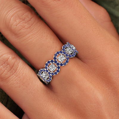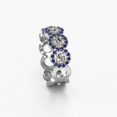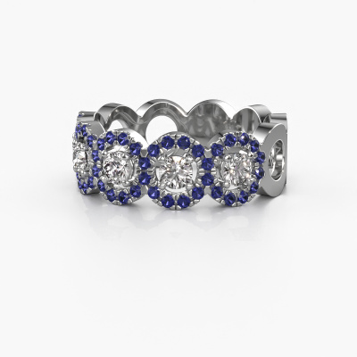 Deze Tanisha ring in 14 Carat witgoud is gezet met saffier. Deze witgouden aanschuifring, met de naam Tanisha, maakt jouw ringen collectie compleet. Zoals de naam het al zegt, is het een ring die naast een andere ring aan dezelfde vinger geschoven kan worden. Hierdoor kun jij je eigen stijl prachtig weergeven. Een aanschuifring wordt ook wel gekoppeld aan herinneringen, bijvoorbeeld aan een bijzonder persoon of een moment dat je niet meer wilt vergeten. Bij een huwelijksjubileum wordt er ook vaak gekozen voor een aanschuifring bij de trouwringen. Maar ook als stijlvolle mode-accessoire komt deze sierlijke ring naast jouw andere ringen helemaal tot zijn recht. Het mooie aan deze sierlijke ring is, dat je deze helemaal zelf kunt samenstellen. Jouw stijl, jouw keuze, jouw ring. Bovendien wordt jouw klassieke witgouden ring met de hand gemaakt, met eerlijke materialen! Met onze configurator pas je dit gemakkelijk aan.Door het gebruik van de modernste technieken, gecombineerd met ambachtelijk vakmanschap kunnen wij alle ringen zelf in ons atelier maken. Iedere ring wordt pas gemaakt nadat deze besteld is. Dit heeft als bijkomend voordeel dat we kunnen leveren tegen een prijs die je nergens anders tegenkomt.Om het voor jou makkelijker te maken kun je ieder besteld sieraad binnen 30 dagen na aflevering eenvoudig weer retour sturen.Heb je vragen over het samenstellen van jouw sierlijke Tanisha sierlijke ring? Geen enkel probleem. Neem contact met ons op, en ons team van juwelenontwerpers helpt je verder.
