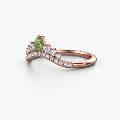 Deze Crown A aanschuifring in 14 Carat rosé goud is gezet met toermalijn groen. Deze rosé gouden aanschuifring, met de naam Crown A, maakt jouw ringen collectie compleet. Zoals de naam het al zegt, is het een aanschuifring die naast een andere aanschuifring aan dezelfde vinger geschoven kan worden. Hierdoor kun jij je eigen stijl prachtig weergeven. Een aanschuifring wordt ook wel gekoppeld aan herinneringen, bijvoorbeeld aan een bijzonder persoon of een moment dat je niet meer wilt vergeten. Bij een huwelijksjubileum wordt er ook vaak gekozen voor een aanschuifring bij de trouwringen. Maar ook als stijlvolle mode-accessoire komt deze speciale aanschuifring naast jouw andere ringen helemaal tot zijn recht. Jouw persoonlijke speciale Crown A aanschuifring stel je zelf samen, en wordt met liefde en passie door onze goudsmeden vervaardigd. Wil je liever een andere optie dan de hier afgebeelde rosé gouden Crown A aanschuifring? Dan heb je via de configurator keuze uit diverse mogelijkheden. Kom je er niet helemaal uit, dan dienen wij je graag van advies!Met veel passie gaan onze edelsmeden met jouw ring aan de slag in ons atelier, zodra je deze besteld hebt. Doordat we geen sieraden op voorraad hebben, hoeven we de voorraad niet door te berekenen in de prijs. En dat zie je terug in de prijs! We geven je graag een beste prijsgarantie.Om het voor jou makkelijker te maken kun je ieder besteld sieraad binnen 30 dagen na aflevering eenvoudig weer retour sturen.Heb je vragen over het samenstellen van jouw speciale Crown A speciale ring? Geen enkel probleem. Neem contact met ons op, en ons team van juwelenontwerpers helpt je verder.