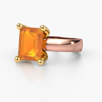 Wil je een mooie, edelstenen ring met een enkele edelsteen als eyecatcher? Wat denk je dan van deze Clelia EME ring? De Clelia EME ring zie je hier afgebeeld in rosé goud met een prachtige 10x8 mm smaragd geslepen citrien. De citrien wordt met zeer zorgvuldig uitgezocht door onze leveranciers van citrien, en daarna volgens het oude ambacht door de goudsmid geplaatst in de ring. Deze wordt tot in het kleinste detail afgewerkt en gepolijst totdat een unieke ring is ontstaan met een prachtige citrien. Speciaal voor jou vervaardigd! De Clelia EME is speciaal voor jou gemaakt, met aandacht voor detail en design.Het mooiste cadeau wat je kunt geven, is een zelfontworpen moderne ring. Ons team van gepassioneerde goudsmeden voegt iedere dag de mooiste nieuwe ontwerpen toe. En elk ontwerp kun je naar jouw wens aanpassen. Zo heb je de keuze welk edelmetaal gebruikt wordt, en kun je de kleur kiezen van de edelstenen. Zo wordt jouw moderne Clelia EME ring ontwerp geheel uniek!Onze goudsmeden vervaardigen pas je ring, zodra je deze besteld hebt. We hebben geen voorraden. Het voordeel hiervan is dat we de voorraad niet door hoeven te berekenen in de prijs, en wij daardoor sieraden kunnen leveren tegen een bijzonder lage prijs.Om het voor jou makkelijker te maken kun je ieder besteld sieraad binnen 30 dagen na aflevering eenvoudig weer retour sturen.Heb je een vraag, kijk dan eens bij onze veelgestelde vragen. Kom je er niet uit met de configurator, of heb je specifieke wensen voor jouw persoonlijke Clelia EME ring, aarzel dan niet om contact met ons op te nemen!
