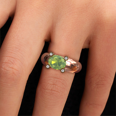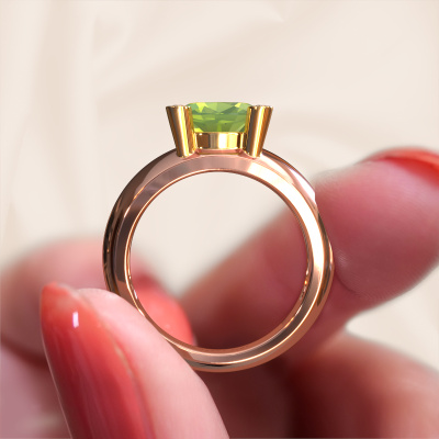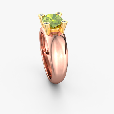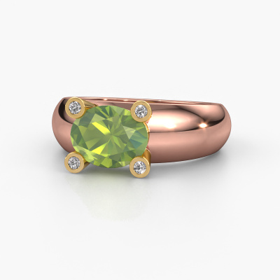 Wil je een mooie, fashionable ring met een enkele edelsteen als eyecatcher? Wat denk je dan van deze Tamara OVL ring? De Tamara OVL ring zie je hier afgebeeld in rosé goud met een prachtige 9x7 mm ovale peridoot. De peridoot wordt met zeer zorgvuldig uitgezocht door onze leveranciers van peridoot, en daarna volgens het oude ambacht door de goudsmid geplaatst in de ring. Deze wordt tot in het kleinste detail afgewerkt en gepolijst totdat een unieke ring is ontstaan met een prachtige peridoot. Speciaal voor jou vervaardigd! De Tamara OVL is speciaal voor jou gemaakt, met aandacht voor detail en design.Het mooiste cadeau wat je kunt geven, is een zelfontworpen moderne ring. Ons team van gepassioneerde goudsmeden voegt iedere dag de mooiste nieuwe ontwerpen toe. En elk ontwerp kun je naar jouw wens aanpassen. Zo heb je de keuze welk edelmetaal gebruikt wordt, en kun je de kleur kiezen van de edelstenen. Zo wordt jouw moderne Tamara OVL ring ontwerp geheel uniek!Onze goudsmeden vervaardigen pas je ring, zodra je deze besteld hebt. We hebben geen voorraden. Het voordeel hiervan is dat we de voorraad niet door hoeven te berekenen in de prijs, en wij daardoor sieraden kunnen leveren tegen een bijzonder lage prijs.Om het voor jou makkelijker te maken kun je ieder besteld sieraad binnen 30 dagen na aflevering eenvoudig weer retour sturen.Heb je een vraag, kijk dan eens bij onze veelgestelde vragen. Kom je er niet uit met de configurator, of heb je specifieke wensen voor jouw persoonlijke Tamara OVL ring, aarzel dan niet om contact met ons op te nemen!