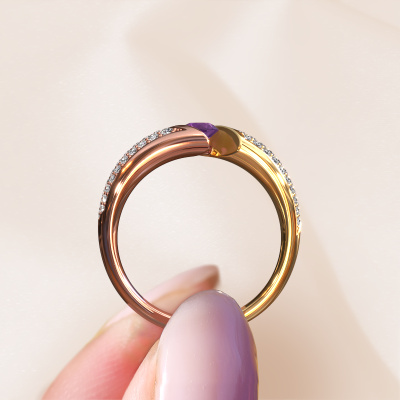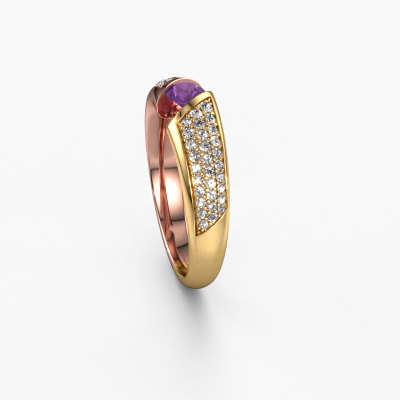 Deze exclusieve rosé gouden ring, met de naam Hojalien 3, is een puur staaltje vakmanschap! De ring is uitgevoerd in 14 Carat rosé goud en is gezet met ronde amethist van 4 mm. De kleinste details zijn door onze goudsmid met veel geduld en passie vervaardigd. Dit echte ambacht vraagt een deskundig oog en vaardige hand om deze ring met uiterste precisie samen te stellen. En dat is precies waar onze goudsmeden enthousiast van worden! De prachtige amethisten worden op een speciale manier gezet, zodat deze nog beter tot zijn recht komen. Dit geeft de ring extra allure. De ring is al uniek door zijn natuurlijke edelsteen, die wij speciaal geselecteerd hebben voor deze Hojalien 3 ring. En door jouw keuze voor edelmetaal creëer jij zelf een unieke ring. Het mooie aan deze pavé gezette ring is, dat je deze helemaal zelf kunt samenstellen. Jouw stijl, jouw keuze, jouw ring. Bovendien wordt jouw exclusieve rosé gouden ring met de hand gemaakt, met eerlijke materialen! Met onze configurator pas je dit gemakkelijk aan.Door het gebruik van de modernste technieken, gecombineerd met ambachtelijk vakmanschap kunnen wij alle ringen zelf in ons atelier maken. Iedere ring wordt pas gemaakt nadat deze besteld is. Dit heeft als bijkomend voordeel dat we kunnen leveren tegen een prijs die je nergens anders tegenkomt.Om het voor jou makkelijker te maken kun je ieder besteld sieraad binnen 30 dagen na aflevering eenvoudig weer retour sturen.Heb je misschien nog vragen? Wil je een bestaand ontwerp aanpassen met je eigen ideeën? Ook dan neem je contact met ons op. Ons team van vakmensen dient je graag van advies bij het creëren van jouw exclusief droom juweel.