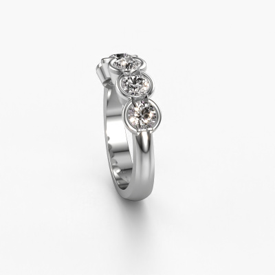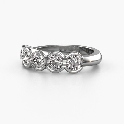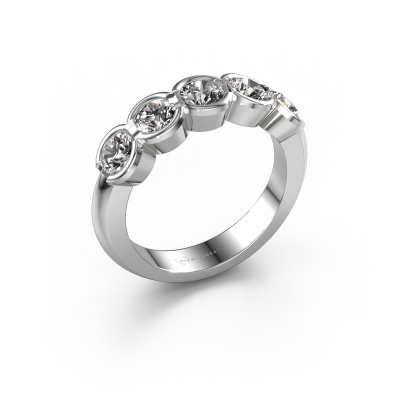Deze ring heeft de naam Lotte 5, deze ring uitgevoerd in platina is gezet met diamant ter grootte van 0.25 crt. Ben je op zoek naar een unieke platina ring met een moderne uitstraling? Dan is dit een mooie ring, die je zelf naar jouw of haar smaak verder kunt aanpassen. Perfect voor de eigentijdse, moderne vrouw! In deze 5 steens ring is prachtige diamant verwerkt. Deze is zorgvuldig geselecteerd, want op jouw ring mag alleen de mooiste edelsteen schitteren. Onze goudsmid vervaardigt jouw ring in ons eigen atelier, en plaatst de diamant met uiterste precisie in de ring. Vervolgens wordt deze bijgewerkt en gepolijst totdat het resultaat zichtbaar is: de perfecte ring!Door het gebruik van de modernste technieken, gecombineerd met ambachtelijk vakmanschap kunnen wij alle ringen zelf in ons atelier maken. Iedere ring wordt pas gemaakt nadat deze besteld is. Dit heeft als bijkomend voordeel dat we kunnen leveren tegen een prijs die je nergens anders tegenkomt.Elke dag worden nieuwe ring ontwerpen toegevoegd aan de site door ons team van talentvolle en gepassioneerde ontwerpers. Hierbij wordt ernaar gestreefd om een zo gevarieerd mogelijke collectie aan te bieden. Heb je bepaalde ideeën voor een ring, neem dan eens contact op voor een offerte. Wij doen je een aanbod wat betreft prijs en kwaliteit waar je geen nee tegen zult kunnen zeggen.Om het voor jou makkelijker te maken kun je ieder besteld sieraad binnen 30 dagen na aflevering eenvoudig weer retour sturen.