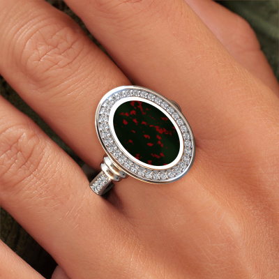 Deze platina dames zegelring getuigt van een echt stukje vakmanschap. Deze bijzondere zegelring heeft de naam Cristina en is gezet met een ovale vorm heliotroop. In ons atelier combineren wij de meest innovatieve technieken met het pure ambacht van goudsmeden, waardoor tot in het kleinste detail prachtige ringen ontstaan. Voor onze goudsmeden zijn vooral ringen fascinerende juwelen. In het zegel kan een familiewapen of een initiaal gegraveerd worden en vooral ringen met familiewapen kunnen soms tradities lang doorgegeven worden. Daarbij is een zegelring een prachtig, stijlvol juweel, dat tegenwoordig weer helemaal in is. Reden genoeg om de familietraditie voort te zetten of een nieuwe traditie te beginnen! Bekijk gerust al onze mogelijkheden voor het graveren van jouw zegelring in onze kennisbank! De verschillende afdelingen binnen de kennisbank vindt u onderaan deze pagina. Zodra je jouw Cristina zegelring hebt ontworpen met onze configurator, gaan onze goudsmeden aan de slag om deze voor je te vervaardigen. Dit gebeurt op ambachtelijke wijze met passie en zorgvuldigheid. Bovendien werken wij met eerlijk gewonnen materialen. Wil je iets aanpassen, dan doe je dat met onze configurator. Heb je specifieke wensen voor jouw Cristina zegelring, maar zie je deze niet als optie staan in de configurator, neem dan contact op met ons team van ervaren ontwerpers.Met veel passie gaan onze edelsmeden met jouw ring aan de slag in ons atelier, zodra je deze besteld hebt. Doordat we geen sieraden op voorraad hebben, hoeven we de voorraad niet door te berekenen in de prijs. En dat zie je terug in de prijs! We geven je graag een beste prijsgarantie.Om het voor jou makkelijker te maken kun je ieder besteld sieraad binnen 30 dagen na aflevering eenvoudig weer retour sturen.Ben je klaar om jouw bijzondere Cristina zegelring samen te stellen, maar heb je nog vragen? Stel deze dan gerust. Ons team van ervaren en gepassioneerde goudsmeden staat voor je klaar!