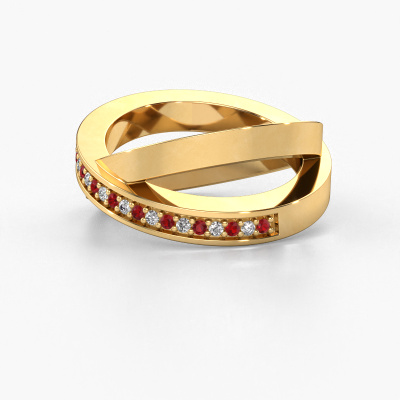 Deze elegante ring met robijn heeft door zijn prachtige afwerking een stijlvol karakter. Een elegante ring, die helemaal past bij een stijlvolle vrouw met een eigen smaak. Deze gouden ring heeft de naam Julie en is daarmee een mooie eyecatcher. Nadat jij jouw wensen hebt doorgegeven, wordt jouw ring vervaardigd in ons eigen atelier. Door een innovatief concept combineren wij de modernste technieken met puur ambachtswerk en zijn wij in staat jouw ring tot in de kleinste details af te werken. Want dat is waar onze goudsmeden voor gaan: de perfecte ring, speciaal voor jou vervaardigd!De elegante Julie ring zoals je hier afgebeeld ziet, kan helemaal naar jouw wensen verpersoonlijkt worden. De mogelijkheden met onze configurator zijn zeer uitgebreid, maar mocht je toch iets aan jouw persoonlijke Julie ring willen aanpassen wat niet als optie geboden wordt, dan kun je altijd contact met ons opnemen.Ben je gebonden aan een bepaald budget? Neem gerust contact met ons op, we adviseren graag over alle mogelijkheden. Sowieso leveren wij alle ringen tegen een prijs die je nergens anders tegen komt, doordat we de ring pas vervaardigen wanneer je deze besteld. Hierdoor kunnen wij je een beste prijs garantie geven.Om het voor jou makkelijker te maken kun je ieder besteld sieraad binnen 30 dagen na aflevering eenvoudig weer retour sturen.Zijn er vragen die je wilt stellen over het samenstellen van jouw elegante Julie ring, dan kun je deze altijd stellen aan onze ervaren goudsmeden!
