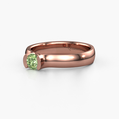 Deze ring heeft de naam Ophelia, deze ring uitgevoerd in 14 Carat rosé goud is gezet met groene lab grown diamant ter grootte van 4.2 mm. Ben je op zoek naar een unieke rosé gouden ring met een moderne uitstraling? Dan is dit een mooie ring, die je zelf naar jouw of haar smaak verder kunt aanpassen. Perfect voor de eigentijdse, moderne vrouw! In deze betaalbare ring is prachtige groene lab grown diamant verwerkt. Deze is zorgvuldig geselecteerd, want op jouw ring mag alleen de mooiste edelsteen schitteren. Onze goudsmid vervaardigt jouw ring in ons eigen atelier, en plaatst de groene lab grown diamant met uiterste precisie in de ring. Vervolgens wordt deze bijgewerkt en gepolijst totdat het resultaat zichtbaar is: de perfecte ring!