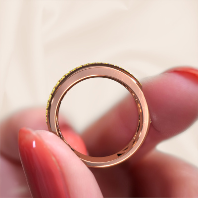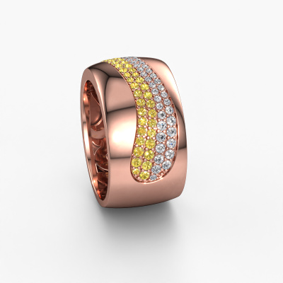 Deze ring heeft de naam Ria, deze ring uitgevoerd in 14 Carat rosé goud is gezet met gele saffier ter grootte van 1 mm. Ben je op zoek naar een unieke rosé gouden ring met een luxe uitstraling? Dan is dit een mooie ring, die je zelf naar jouw of haar smaak verder kunt aanpassen. Perfect voor de eigentijdse, luxe vrouw! In deze brede ring is prachtige gele saffier verwerkt. Deze is zorgvuldig geselecteerd, want op jouw ring mag alleen de mooiste edelsteen schitteren. Onze goudsmid vervaardigt jouw ring in ons eigen atelier, en plaatst de gele saffier met uiterste precisie in de ring. Vervolgens wordt deze bijgewerkt en gepolijst totdat het resultaat zichtbaar is: de perfecte ring!Ben je gebonden aan een bepaald budget? Neem gerust contact met ons op, we adviseren graag over alle mogelijkheden. Sowieso leveren wij alle ringen tegen een prijs die je nergens anders tegen komt, doordat we de ring pas vervaardigen wanneer je deze besteld. Hierdoor kunnen wij je een beste prijs garantie geven.