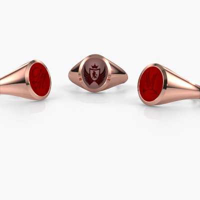 Deze rosé gouden dames zegelring getuigt van een echt stukje vakmanschap. Deze elegante zegelring heeft de naam Evon 2 en is gezet met een ovale vorm carneool. In ons atelier combineren wij de meest innovatieve technieken met het pure ambacht van goudsmeden, waardoor tot in het kleinste detail prachtige ringen ontstaan. Voor onze goudsmeden zijn vooral ringen fascinerende juwelen. In het zegel kan een familiewapen of een initiaal gegraveerd worden en vooral ringen met familiewapen kunnen soms tradities lang doorgegeven worden. Daarbij is een zegelring een prachtig, stijlvol juweel, dat tegenwoordig weer helemaal in is. Reden genoeg om de familietraditie voort te zetten of een nieuwe traditie te beginnen! Bekijk gerust al onze mogelijkheden voor het graveren van jouw zegelring in onze kennisbank! De verschillende afdelingen binnen de kennisbank vindt u onderaan deze pagina. Het mooie aan deze elegante zegelring is, dat je deze helemaal zelf kunt samenstellen. Jouw stijl, jouw keuze, jouw zegelring. Bovendien wordt jouw moderne rosé gouden zegelring met de hand gemaakt, met eerlijke materialen! Met onze configurator pas je dit gemakkelijk aan.Met veel passie gaan onze edelsmeden met jouw ring aan de slag in ons atelier, zodra je deze besteld hebt. Doordat we geen sieraden op voorraad hebben, hoeven we de voorraad niet door te berekenen in de prijs. En dat zie je terug in de prijs! We geven je graag een beste prijsgarantie.Om het voor jou makkelijker te maken kun je ieder besteld sieraad binnen 30 dagen na aflevering eenvoudig weer retour sturen.Ben je klaar om jouw elegante Evon 2 zegelring samen te stellen, maar heb je nog vragen? Stel deze dan gerust. Ons team van ervaren en gepassioneerde goudsmeden staat voor je klaar!