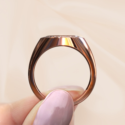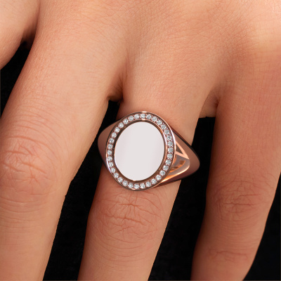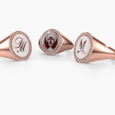 Deze rosé gouden dames zegelring getuigt van een echt stukje vakmanschap. Deze beste prijs zegelring heeft de naam Hilda 2 en is gezet met een ovale vorm rode lagensteen. In ons atelier combineren wij de meest innovatieve technieken met het pure ambacht van goudsmeden, waardoor tot in het kleinste detail prachtige ringen ontstaan. Voor onze goudsmeden zijn vooral ringen fascinerende juwelen. In het zegel kan een familiewapen of een initiaal gegraveerd worden en vooral ringen met familiewapen kunnen soms tradities lang doorgegeven worden. Daarbij is een zegelring een prachtig, stijlvol juweel, dat tegenwoordig weer helemaal in is. Reden genoeg om de familietraditie voort te zetten of een nieuwe traditie te beginnen! Bekijk gerust al onze mogelijkheden voor het graveren van jouw zegelring in onze kennisbank! De verschillende afdelingen binnen de kennisbank vindt u onderaan deze pagina. Onze goudsmeden vervaardigen met veel passie en zorgvuldigheid jouw zegelring op maat en naar eigen wens. De rosé gouden zegelring zoals hier is afgebeeld, kan naar jouw wens worden aangepast met de configurator. Heb je bepaalde ideeën die je met de configurator niet kunt toepassen, dan kun je dit altijd opnemen met onze sieradenontwerpers. Met vragen kun je uiteraard ook altijd terecht.Onze goudsmeden vervaardigen pas je ring, zodra je deze besteld hebt. We hebben geen voorraden. Het voordeel hiervan is dat we de voorraad niet door hoeven te berekenen in de prijs, en wij daardoor sieraden kunnen leveren tegen een bijzonder lage prijs.Om het voor jou makkelijker te maken kun je ieder besteld sieraad binnen 30 dagen na aflevering eenvoudig weer retour sturen.Ben je klaar om jouw beste prijs Hilda 2 zegelring samen te stellen, maar heb je nog vragen? Stel deze dan gerust. Ons team van ervaren en gepassioneerde goudsmeden staat voor je klaar!