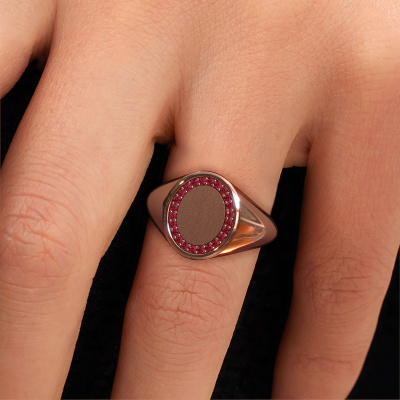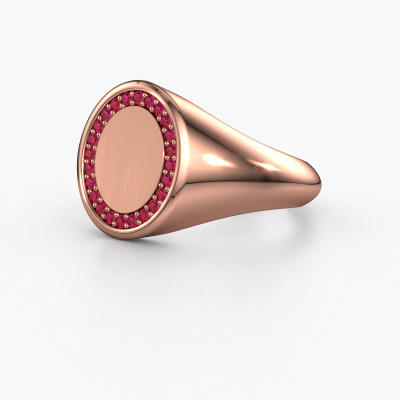 Deze rosé gouden dames zegelring getuigt van een echt stukje vakmanschap. Deze charmante zegelring heeft de naam Rosy Oval 2 en is gezet met een ronde robijn. In ons atelier combineren wij de meest innovatieve technieken met het pure ambacht van