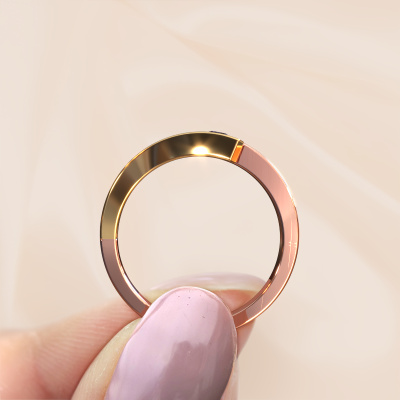 Deze ring heeft de naam Rosario, deze ring uitgevoerd in 14 Carat rosé goud is gezet met saffier ter grootte van 3 mm. Ben je op zoek naar een unieke rosé gouden ring met een moderne uitstraling? Dan is dit een mooie ring, die je zelf naar jouw of haar smaak verder kunt aanpassen. Perfect voor de eigentijdse, moderne vrouw! In deze strakke ring is prachtige saffier verwerkt. Deze is zorgvuldig geselecteerd, want op jouw ring mag alleen de mooiste edelsteen schitteren. Onze goudsmid vervaardigt jouw ring in ons eigen atelier, en plaatst de saffier met uiterste precisie in de ring. Vervolgens wordt deze bijgewerkt en gepolijst totdat het resultaat zichtbaar is: de perfecte ring!Ben je gebonden aan een bepaald budget? Neem gerust contact met ons op, we adviseren graag over alle mogelijkheden. Sowieso leveren wij alle ringen tegen een prijs die je nergens anders tegen komt, doordat we de ring pas vervaardigen wanneer je deze besteld. Hierdoor kunnen wij je een beste prijs garantie geven.