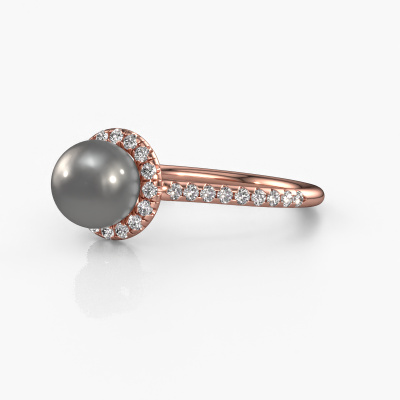 Bovenstaande ring heeft de naam Anke, dit type ring noemen we een Halo ring. De ring is uitgevoerd in 14 Carat rosé goud en heeft als middensteen een bolle grijze parel ter grootte van 7 mm en eromheen zijn kleine diamanten gezet. Bij deze verfijnde rosé gouden halo ring zijn de kleinere edelstenen rondom de grote grijze parel zijn gezet. Daar heeft deze ring zijn naam ook door heeft gekregen: halo betekent lichtkrans en dat is waar de kleinere edelstenen voor zorgen. Deze kleinere edelstenen moeten dan echter wel allen op dezelfde manier geplaatst zijn, zodat het licht niet doorbroken wordt in de grijze parel en er inderdaad een prachtige lichtkrans gecreëerd wordt. En daar zorgen onze meestergoudsmeden voor. Met uiterste precisie wordt iedere zorgvuldig geselecteerde grijze parel met de hand in de ring geplaatst. Steeds opnieuw wordt de ring tegen het licht gehouden om te zien of het speciale effect nog steeds zichtbaar is. Het resultaat is een unieke ring, waarbij de gekozen grijze parel letterlijk het stralende middelpunt wordt. Een prachtige ring!De verfijnde Anke ring zoals je hier afgebeeld ziet, kan helemaal naar jouw wensen verpersoonlijkt worden. De mogelijkheden met onze configurator zijn zeer uitgebreid, maar mocht je toch iets aan jouw persoonlijke Anke ring willen aanpassen wat niet als optie geboden wordt, dan kun je altijd contact met ons opnemen.Door het gebruik van de modernste technieken, gecombineerd met ambachtelijk vakmanschap kunnen wij alle ringen zelf in ons atelier maken. Iedere ring wordt pas gemaakt nadat deze besteld is. Dit heeft als bijkomend voordeel dat we kunnen leveren tegen een prijs die je nergens anders tegenkomt.Om het voor jou makkelijker te maken kun je ieder besteld sieraad binnen 30 dagen na aflevering eenvoudig weer retour sturen.Wil je jouw unieke Anke ring ontwerpen, maar zijn bepaalde dingen je nog niet duidelijk? Neem dan even een kijkje op onze pagina met veelgestelde vragen, of neem contact op met ons team van ervaren vakmensen.