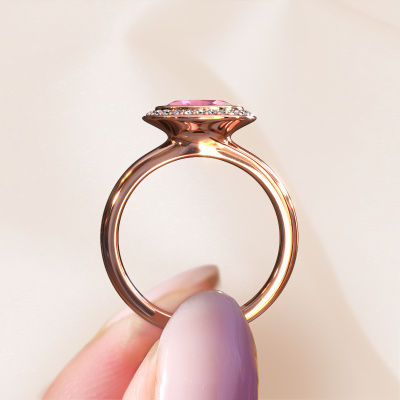 Wil je een mooie, edelstenen ring met een enkele edelsteen als eyecatcher? Wat denk je dan van deze Salena ring? De Salena ring zie je hier afgebeeld in rosé goud met een prachtige 8x6 mm ovale roze saffier. De roze saffier wordt met zeer zorgvuldig uitgezocht door onze leveranciers van roze saffier, en daarna volgens het oude ambacht door de goudsmid geplaatst in de ring. Deze wordt tot in het kleinste detail afgewerkt en gepolijst totdat een unieke ring is ontstaan met een prachtige roze saffier. Speciaal voor jou vervaardigd!Het mooie aan deze edelstenen ring is, dat je deze helemaal zelf kunt samenstellen. Jouw stijl, jouw keuze, jouw ring. Bovendien wordt jouw design rosé gouden ring met de hand gemaakt, met eerlijke materialen! Met onze configurator pas je dit gemakkelijk aan.Wil je jouw Salena ring laten graveren, dan kun je dit doorgeven bij je bestelling. Wij zorgen ervoor dat je ring helemaal naar wens wordt vervaardigd. Door het gebruik van de modernste technieken, gecombineerd met ambachtelijk vakmanschap kunnen wij alle ringen zelf in ons atelier maken. Iedere ring wordt pas gemaakt nadat deze besteld is. Dit heeft als bijkomend voordeel dat we kunnen leveren tegen een prijs die je nergens anders tegenkomt.Om het voor jou makkelijker te maken kun je ieder besteld sieraad binnen 30 dagen na aflevering eenvoudig weer retour sturen.Heb je vragen, dan kun je altijd een kijkje nemen bij onze veelgestelde vragen. Kom je er niet uit, of zie je het antwoord op je vraag er niet bij staan, neem dan gerust contact op met het DiamondsByMe team!