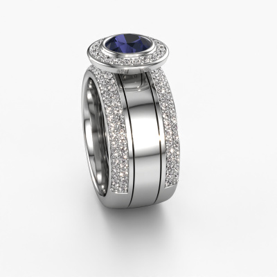 Deze pavé gezette ring met saffier heeft door zijn prachtige afwerking een stijlvol karakter. Een pavé gezette ring, die helemaal past bij een stijlvolle vrouw met een eigen smaak. Deze platina ring heeft de naam Roxie en is daarmee een mooie