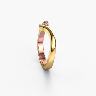 Deze ring heeft de naam Arda, deze ring uitgevoerd in 14 Carat rosé goud is gezet met diamant. Ben je op zoek naar een unieke rosé gouden ring met een moderne uitstraling? Dan is dit een mooie ring, die je zelf naar jouw of haar smaak verder kunt aanpassen. Perfect voor de eigentijdse, moderne vrouw! In deze slagring ring is een prachtige diamant verwerkt. Deze is zorgvuldig geselecteerd, want op jouw ring mag alleen de mooiste edelsteen schitteren. Onze goudsmid vervaardigt jouw ring in ons eigen atelier, en plaatst de diamant met uiterste precisie in de ring. Vervolgens wordt deze bijgewerkt en gepolijst totdat het resultaat zichtbaar is: de perfecte ring!Onze goudsmeden vervaardigen pas je ring, zodra je deze besteld hebt. We hebben geen voorraden. Het voordeel hiervan is dat we de voorraad niet door hoeven te berekenen in de prijs, en wij daardoor sieraden kunnen leveren tegen een bijzonder lage prijs.Iedere dag worden nieuwe sieraad ontwerpen toegevoegd aan de website. Ons team van gepassioneerde designers streeft ernaar om tot de mooiste ontwerpen te komen, en een zo gevarieerd mogelijk aanbod. Heb je ergens een ring gezien welke je wilt laten maken, stuur ons dan bericht. Wij sturen je graag een offerte toe. Hierin bieden wij de beste prijs en kwaliteit. Je zult dit zeker niet kunnen afslaan!Om het voor jou makkelijker te maken kun je ieder besteld sieraad binnen 30 dagen na aflevering eenvoudig weer retour sturen.We zijn benieuwd hoe je jouw Arda ring gaat personaliseren. Is iets je niet geheel duidelijk, dan kun je natuurlijk altijd contact opnemen. We helpen je graag!