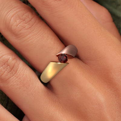 Deze ring heeft de naam Hojalien 1, deze ring uitgevoerd in 14 Carat rosé goud is gezet met granaat. Ben je op zoek naar een unieke rosé gouden ring met een moderne uitstraling? Dan is dit een mooie ring, die je zelf naar jouw of haar smaak verder kunt aanpassen. Perfect voor de eigentijdse, moderne vrouw! In deze smaakvolle ring is een prachtige granaat verwerkt. Deze is zorgvuldig geselecteerd, want op jouw ring mag alleen de mooiste edelsteen schitteren. Onze goudsmid vervaardigt jouw ring in ons eigen atelier, en plaatst de granaat met uiterste precisie in de ring. Vervolgens wordt deze bijgewerkt en gepolijst totdat het resultaat zichtbaar is: de perfecte ring!Door onze modernste technieken kunnen wij met uiterste precisie prachtige sieraden te ontwerpen en voor jou personaliseren in de hoogste juwelierskwaliteit. Tegelijkertijd zijn onze ringen altijd 30% goedkoper dan bij een andere juwelier. Dit komt doordat alle ringen pas vervaardigd worden op het moment dat deze besteld wordt en we daardoor geen dure voorraden hoeven te hanteren. Mocht je aan een bepaald budget gebonden zijn, kunnen we je graag adviseren welke combinatie je het beste kunt kiezen.