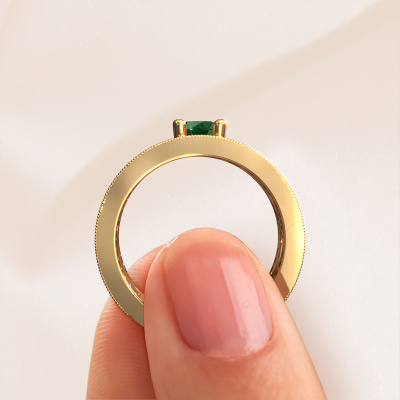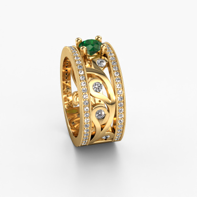 Wordt jouw aandacht ook altijd getrokken door vintage artikelen? Dan kun je er vrijwel zeker van zijn dat deze gouden ring helemaal bij jou past! Een nieuw model, gebaseerd op vintage motieven. Ietwat dromerig, een prachtig ontwerp! Zeker als je deze nog verder aanpast naar jouw smaak. In deze speciale ring zijn prachtige smaragd verwerkt. Zoals je ziet kun je zelf voor een edelsteen kiezen die bij jouw stijl past. Iedere edelsteen wordt zorgvuldig geselecteerd bij onze handelaren wereldwijd, onze goudsmid wil alleen de mooiste edelstenen op een juweel verwerken. Het is immers de kroon op zijn werk!Jouw persoonlijke speciale Sanne ring stel je zelf samen, en wordt met liefde en passie door onze goudsmeden vervaardigd. Wil je liever een andere optie dan de hier afgebeelde gouden Sanne ring? Dan heb je via de configurator keuze uit diverse mogelijkheden. Kom je er niet helemaal uit, dan dienen wij je graag van advies!Onze goudsmeden vervaardigen pas je ring, zodra je deze besteld hebt. We hebben geen voorraden. Het voordeel hiervan is dat we de voorraad niet door hoeven te berekenen in de prijs, en wij daardoor sieraden kunnen leveren tegen een bijzonder lage prijs.Om het voor jou makkelijker te maken kun je ieder besteld sieraad binnen 30 dagen na aflevering eenvoudig weer retour sturen.Heb je vragen over de speciale Sanne ring? Kijk eens bij onze veelgestelde vragen. Natuurlijk kun je ook contact opnemen met het DiamondsByMe team. Wij dienen je graag van advies!