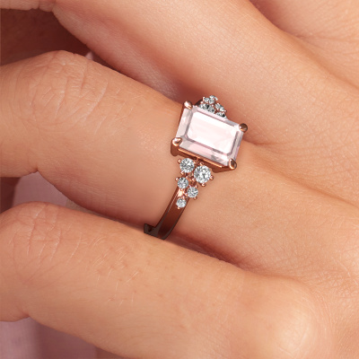 Hoe zou jij jouw stijl omschrijven? Hou jij van iets dat net anders dan anders is? Deze sprankelende rosé gouden ring is een prachtige ring, die je zelf naar jouw of haar smaak verder kunt aanpassen. In deze ring is morganiet champagne verwerkt.
