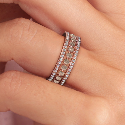 Deze exclusieve rosé gouden ring, met de naam Elizbeth 1, is een puur staaltje vakmanschap! De ring is uitgevoerd in 14 Carat rosé goud en is gezet met ronde bruine diamant van 0.84 crt. De kleinste details zijn door onze goudsmid met veel geduld en passie vervaardigd. Dit echte ambacht vraagt een deskundig oog en vaardige hand om deze ring met uiterste precisie samen te stellen. En dat is precies waar onze goudsmeden enthousiast van worden! De prachtige bruine diamanten worden op een speciale manier gezet, zodat deze nog beter tot zijn recht komen. Dit geeft de ring extra allure. De ring is al uniek door zijn natuurlijke edelsteen, die wij speciaal geselecteerd hebben voor deze Elizbeth 1 ring. En door jouw keuze voor edelmetaal creëer jij zelf een unieke ring. Het mooie aan deze sprankelende ring is, dat je deze helemaal zelf kunt samenstellen. Jouw stijl, jouw keuze, jouw ring. Bovendien wordt jouw vintage rosé gouden ring met de hand gemaakt, met eerlijke materialen! Met onze configurator pas je dit gemakkelijk aan.Door het gebruik van de modernste technieken, gecombineerd met ambachtelijk vakmanschap kunnen wij alle ringen zelf in ons atelier maken. Iedere ring wordt pas gemaakt nadat deze besteld is. Dit heeft als bijkomend voordeel dat we kunnen leveren tegen een prijs die je nergens anders tegenkomt.Om het voor jou makkelijker te maken kun je ieder besteld sieraad binnen 30 dagen na aflevering eenvoudig weer retour sturen.Heb je misschien nog vragen? Wil je een bestaand ontwerp aanpassen met je eigen ideeën? Ook dan neem je contact met ons op. Ons team van vakmensen dient je graag van advies bij het creëren van jouw vintage droom juweel.
