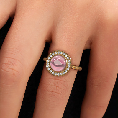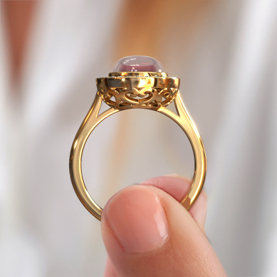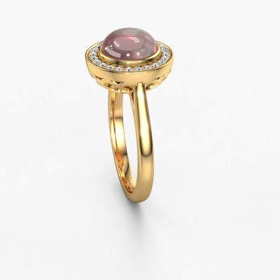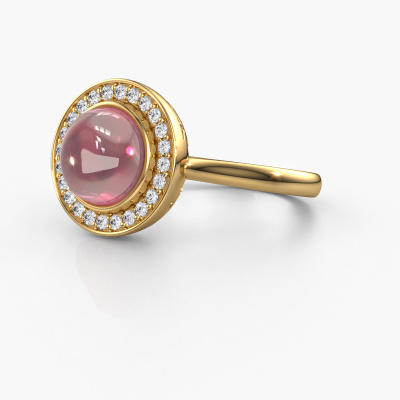Wil je een mooie, royale ring met een enkele edelsteen als eyecatcher? Wat denk je dan van deze Alisa ring? De Alisa ring zie je hier afgebeeld in goud met een prachtige 8 mm ronde cabochon tourmalijn pink. De tourmalijn pink wordt met zeer zorgvuldig uitgezocht door onze leveranciers van tourmalijn pink, en daarna volgens het oude ambacht door de goudsmid geplaatst in de ring. Deze wordt tot in het kleinste detail afgewerkt en gepolijst totdat een unieke ring is ontstaan met een prachtige tourmalijn pink. Speciaal voor jou vervaardigd!Het mooiste cadeau wat je kunt geven, is een zelfontworpen fantasie ring. Ons team van gepassioneerde goudsmeden voegt iedere dag de mooiste nieuwe ontwerpen toe. En elk ontwerp kun je naar jouw wens aanpassen. Zo heb je de keuze welk edelmetaal gebruikt wordt, en kun je de kleur kiezen van de edelstenen. Zo wordt jouw fantasie Alisa ring ontwerp geheel uniek!Wil je jouw Alisa ring laten graveren, dan kun je dit doorgeven bij je bestelling. Wij zorgen ervoor dat je ring helemaal naar wens wordt vervaardigd. Ben je gebonden aan een bepaald budget? Neem gerust contact met ons op, we adviseren graag over alle mogelijkheden. Sowieso leveren wij alle ringen tegen een prijs die je nergens anders tegen komt, doordat we de ring pas vervaardigen wanneer je deze besteld. Hierdoor kunnen wij je een beste prijs garantie geven.Om het voor jou makkelijker te maken kun je ieder besteld sieraad binnen 30 dagen na aflevering eenvoudig weer retour sturen.Heb je vragen, dan kun je altijd een kijkje nemen bij onze veelgestelde vragen. Kom je er niet uit, of zie je het antwoord op je vraag er niet bij staan, neem dan gerust contact op met het DiamondsByMe team!