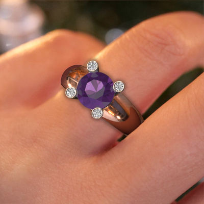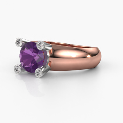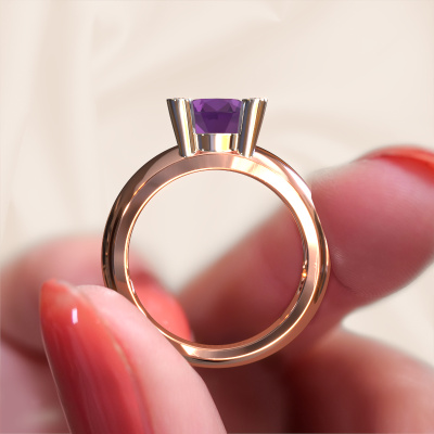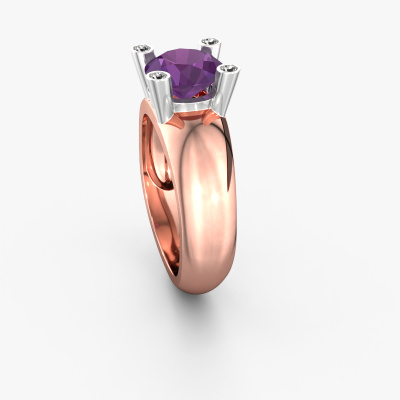 Wil je een mooie, speciale ring met een enkele edelsteen als eyecatcher? Wat denk je dan van deze Tamara RND ring? De Tamara RND ring zie je hier afgebeeld in rosé goud met een prachtige 8 mm ronde amethist. De amethist wordt met zeer zorgvuldig uitgezocht door onze leveranciers van amethisten, en daarna volgens het oude ambacht door de goudsmid geplaatst in de ring. Deze wordt tot in het kleinste detail afgewerkt en gepolijst totdat een unieke ring is ontstaan met een prachtige amethist. Speciaal voor jou vervaardigd! De Tamara RND wordt speciaal voor jou gemaakt door onze meester goudsmeden in ons eigen atelier.Het mooie aan deze speciale ring is, dat je deze helemaal zelf kunt samenstellen. Jouw stijl, jouw keuze, jouw ring. Bovendien wordt jouw trendy rosé gouden ring met de hand gemaakt, met eerlijke materialen! Met onze configurator pas je dit gemakkelijk aan.Door het gebruik van de modernste technieken, gecombineerd met ambachtelijk vakmanschap kunnen wij alle ringen zelf in ons atelier maken. Iedere ring wordt pas gemaakt nadat deze besteld is. Dit heeft als bijkomend voordeel dat we kunnen leveren tegen een prijs die je nergens anders tegenkomt.Om het voor jou makkelijker te maken kun je ieder besteld sieraad binnen 30 dagen na aflevering eenvoudig weer retour sturen.Heb je een vraag, kijk dan eens bij onze veelgestelde vragen. Kom je er niet uit met de configurator, of heb je specifieke wensen voor jouw persoonlijke Tamara RND ring, aarzel dan niet om contact met ons op te nemen!