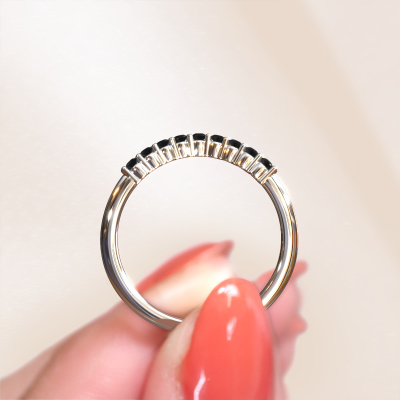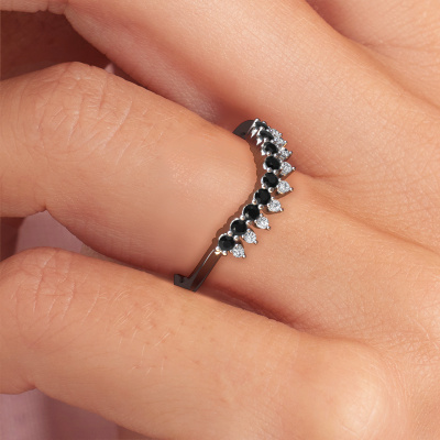 Deze Vivian A aanschuifring in 14 Carat witgoud is gezet met zwarte diamant. Deze witgouden aanschuifring, met de naam Vivian A, maakt jouw ringen collectie compleet. Zoals de naam het al zegt, is het een aanschuifring die naast een andere aanschuifring aan dezelfde vinger geschoven kan worden. Hierdoor kun jij je eigen stijl prachtig weergeven. Een aanschuifring wordt ook wel gekoppeld aan herinneringen, bijvoorbeeld aan een bijzonder persoon of een moment dat je niet meer wilt vergeten. Bij een huwelijksjubileum wordt er ook vaak gekozen voor een aanschuifring bij de trouwringen. Maar ook als stijlvolle mode-accessoire komt deze verfijnde aanschuifring naast jouw andere ringen helemaal tot zijn recht. De verfijnde Vivian A aanschuifring zoals je hier afgebeeld ziet, kan helemaal naar jouw wensen verpersoonlijkt worden. De mogelijkheden met onze configurator zijn zeer uitgebreid, maar mocht je toch iets aan jouw persoonlijke Vivian A aanschuifring willen aanpassen wat niet als optie geboden wordt, dan kun je altijd contact met ons opnemen.Ben je gebonden aan een bepaald budget? Neem gerust contact met ons op, we adviseren graag over alle mogelijkheden. Sowieso leveren wij alle ringen tegen een prijs die je nergens anders tegen komt, doordat we de ring pas vervaardigen wanneer je deze besteld. Hierdoor kunnen wij je een beste prijs garantie geven.Om het voor jou makkelijker te maken kun je ieder besteld sieraad binnen 30 dagen na aflevering eenvoudig weer retour sturen.Heb je vragen over het samenstellen van jouw verfijnde Vivian A verfijnde ring? Geen enkel probleem. Neem contact met ons op, en ons team van juwelenontwerpers helpt je verder.