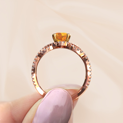 Hoe zou jij jouw stijl omschrijven? Hou jij van iets dat net anders dan anders is? Deze sierlijke rosé gouden ring is een prachtige ring, die je zelf naar jouw of haar smaak verder kunt aanpassen. In deze ring is citrien verwerkt. Deze citrien zijn zorgvuldig geselecteerd, want wij vinden dat op jouw ring alleen de mooiste edelsteen mag schitteren, toch? Onze goudsmid vervaardigt jouw ring beneden in ons eigen atelier, en plaatst de citrien met uiterste precisie in de ring. Vervolgens wordt deze bijgewerkt en gepolijst totdat het resultaat zichtbaar is: de perfecte ring, die getuigt van een vrouw met smaak!Het mooie aan deze sierlijke ring is, dat je deze helemaal zelf kunt samenstellen. Jouw stijl, jouw keuze, jouw ring. Bovendien wordt jouw vintage rosé gouden ring met de hand gemaakt, met eerlijke materialen! Met onze configurator pas je dit gemakkelijk aan.Door het gebruik van de modernste technieken, gecombineerd met ambachtelijk vakmanschap kunnen wij alle ringen zelf in ons atelier maken. Iedere ring wordt pas gemaakt nadat deze besteld is. Dit heeft als bijkomend voordeel dat we kunnen leveren tegen een prijs die je nergens anders tegenkomt.Om het voor jou makkelijker te maken kun je ieder besteld sieraad binnen 30 dagen na aflevering eenvoudig weer retour sturen.Heb je hulp nodig bij het samenstellen van jouw vintage Jeni ring, dan staat ons team van gepassioneerde juwelenontwerpers klaar! Neem gerust contact met ons op, of kijk bij onze veelgestelde vragen.