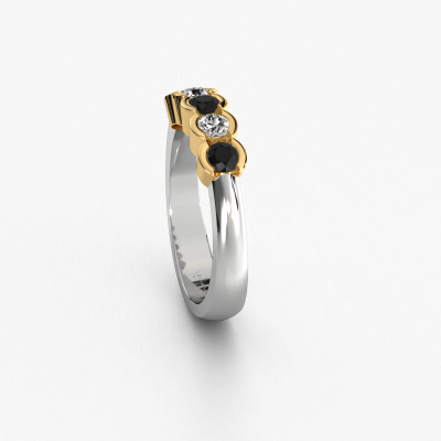 Deze ring heeft de naam Lotte 5, deze ring uitgevoerd in 14 Carat witgoud is gezet met zwarte diamant ter grootte van 0.12 crt. Ben je op zoek naar een unieke witgouden ring met een moderne uitstraling? Dan is dit een mooie ring, die je zelf naar jouw of haar smaak verder kunt aanpassen. Perfect voor de eigentijdse, moderne vrouw! In deze 5 steens ring is prachtige zwarte diamant verwerkt. Deze is zorgvuldig geselecteerd, want op jouw ring mag alleen de mooiste edelsteen schitteren. Onze goudsmid vervaardigt jouw ring in ons eigen atelier, en plaatst de zwarte diamant met uiterste precisie in de ring. Vervolgens wordt deze bijgewerkt en gepolijst totdat het resultaat zichtbaar is: de perfecte ring!Door het gebruik van de modernste technieken, gecombineerd met ambachtelijk vakmanschap kunnen wij alle ringen zelf in ons atelier maken. Iedere ring wordt pas gemaakt nadat deze besteld is. Dit heeft als bijkomend voordeel dat we kunnen leveren tegen een prijs die je nergens anders tegenkomt.Elke dag worden nieuwe ring ontwerpen toegevoegd aan de site door ons team van talentvolle en gepassioneerde ontwerpers. Hierbij wordt ernaar gestreefd om een zo gevarieerd mogelijke collectie aan te bieden. Heb je bepaalde ideeën voor een ring, neem dan eens contact op voor een offerte. Wij doen je een aanbod wat betreft prijs en kwaliteit waar je geen nee tegen zult kunnen zeggen.Om het voor jou makkelijker te maken kun je ieder besteld sieraad binnen 30 dagen na aflevering eenvoudig weer retour sturen.
