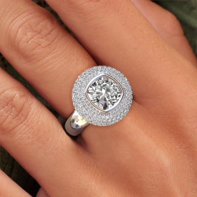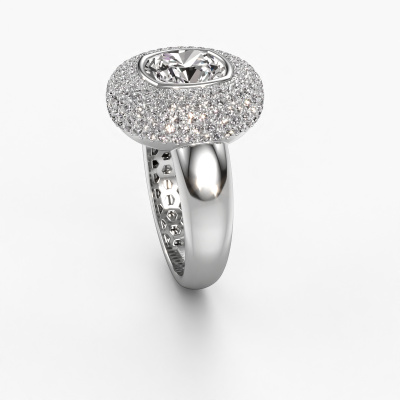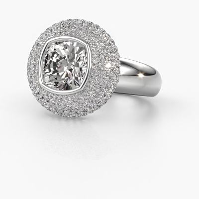 Deze exclusieve witgouden ring, met de naam Keshia, is een puur staaltje vakmanschap! De ring is uitgevoerd in 14 Carat witgoud en is gezet met cushion diamant van 3.803 crt. De kleinste details zijn door onze goudsmid met veel geduld en passie vervaardigd. Dit echte ambacht vraagt een deskundig oog en vaardige hand om deze ring met uiterste precisie samen te stellen. En dat is precies waar onze goudsmeden enthousiast van worden! De prachtige diamanten worden op een speciale manier gezet, zodat deze nog beter tot zijn recht komen. Dit geeft de ring extra allure. De ring is al uniek door zijn natuurlijke edelsteen, die wij speciaal geselecteerd hebben voor deze Keshia ring. En door jouw keuze voor edelmetaal creëer jij zelf een unieke ring. Onze goudsmeden vervaardigen met veel passie en zorgvuldigheid jouw ring op maat en naar eigen wens. De witgouden ring zoals hier is afgebeeld, kan naar jouw wens worden aangepast met de configurator. Heb je bepaalde ideeën die je met de configurator niet kunt toepassen, dan kun je dit altijd opnemen met onze sieradenontwerpers. Met vragen kun je uiteraard ook altijd terecht.Door onze modernste technieken kunnen wij met uiterste precisie prachtige sieraden te ontwerpen en voor jou personaliseren in de hoogste juwelierskwaliteit. Tegelijkertijd zijn onze ringen altijd 30% goedkoper dan bij een andere juwelier. Dit komt doordat alle ringen pas vervaardigd worden op het moment dat deze besteld wordt en we daardoor geen dure voorraden hoeven te hanteren. Mocht je aan een bepaald budget gebonden zijn, kunnen we je graag adviseren welke combinatie je het beste kunt kiezen.Om het voor jou makkelijker te maken kun je ieder besteld sieraad binnen 30 dagen na aflevering eenvoudig weer retour sturen.Heb je misschien nog vragen? Wil je een bestaand ontwerp aanpassen met je eigen ideeën? Ook dan neem je contact met ons op. Ons team van vakmensen dient je graag van advies bij het creëren van jouw exclusief droom juweel.