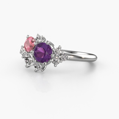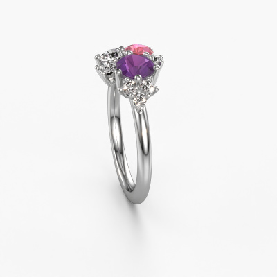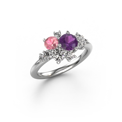 Hoe zou jij jouw stijl omschrijven? Hou jij van iets dat net anders dan anders is? Deze sierlijke witgouden ring is een prachtige ring, die je zelf naar jouw of haar smaak verder kunt aanpassen. In deze ring is amethist verwerkt. Deze amethisten zijn zorgvuldig geselecteerd, want wij vinden dat op jouw ring alleen de mooiste edelsteen mag schitteren, toch? Onze goudsmid vervaardigt jouw ring beneden in ons eigen atelier, en plaatst de amethist met uiterste precisie in de ring. Vervolgens wordt deze bijgewerkt en gepolijst totdat het resultaat zichtbaar is: de perfecte ring, die getuigt van een vrouw met smaak!Jouw persoonlijke sierlijke Veronica ring stel je zelf samen, en wordt met liefde en passie door onze goudsmeden vervaardigd. Wil je liever een andere optie dan de hier afgebeelde witgouden Veronica ring? Dan heb je via de configurator keuze uit diverse mogelijkheden. Kom je er niet helemaal uit, dan dienen wij je graag van advies!Wil je jouw Veronica sierlijke ring nog persoonlijker maken? Dan kun je deze natuurlijk laten graveren. Geef dit aan bij je bestelling. Door onze modernste technieken kunnen wij met uiterste precisie prachtige sieraden te ontwerpen en voor jou personaliseren in de hoogste juwelierskwaliteit. Tegelijkertijd zijn onze ringen altijd 30% goedkoper dan bij een andere juwelier. Dit komt doordat alle ringen pas vervaardigd worden op het moment dat deze besteld wordt en we daardoor geen dure voorraden hoeven te hanteren. Mocht je aan een bepaald budget gebonden zijn, kunnen we je graag adviseren welke combinatie je het beste kunt kiezen.Om het voor jou makkelijker te maken kun je ieder besteld sieraad binnen 30 dagen na aflevering eenvoudig weer retour sturen.Heb je vragen? Neem dan gerust contact met ons op. Onze goudsmeden voorzien je graag van advies bij het samenstellen van jouw eigen Veronica fantasie ring.