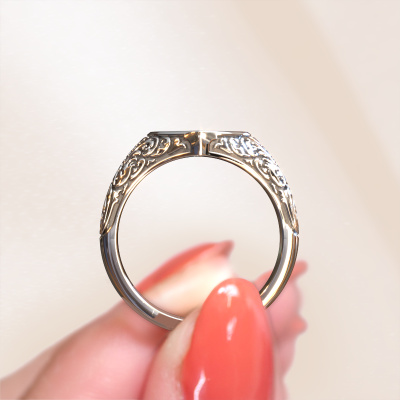 Wat een speciale ring! Deze ring, met de naam Jaye. Een stijlvolle, speciale ring, die past bij een zelfbewuste vrouw met smaak. In deze zegelring komt ons nieuw ambacht helemaal tot zijn recht. In ons atelier hebben wij namelijk een uniek concept ontwikkeld, waardoor de modernste technieken gecombineerd worden met het echte, pure vakmanschap. De witgouden zegelring wordt tot in het kleinste detail ontworpen in 3D, waarna de goudsmid met de hand jouw zegelring gaat vervaardigen, afwerken en polijsten, totdat het perfecte juweel ontstaan is. Een unieke ring, helemaal aangepast naar jouw eigen stijl. Wat denk je van deze vintage witgouden zegelring? Deze Jaye zegelring stel je helemaal zelf samen met onze configurator. Vervolgens wordt jouw persoonlijke speciale Jaye zegelring met de hand gemaakt door onze goudsmeden. De keuze van het edelmetaal en de edelstenen kun je helemaal naar eigen wens invullen. Heb je bepaalde ideeën voor jouw zegelring, maar kun je deze niet bij onze opties vinden? Laat het ons dan gerust weten. Wij maken jouw persoonlijke vintage zegelring geheel naar jouw wensen.Onze goudsmeden vervaardigen pas je ring, zodra je deze besteld hebt. We hebben geen voorraden. Het voordeel hiervan is dat we de voorraad niet door hoeven te berekenen in de prijs, en wij daardoor sieraden kunnen leveren tegen een bijzonder lage prijs.Om het voor jou makkelijker te maken kun je ieder besteld sieraad binnen 30 dagen na aflevering eenvoudig weer retour sturen.Heb je vragen over de samenstelling van jouw speciale Jaye ring, aarzel dan niet om contact op te nemen met ons team van goudsmeden. Ook wijzigingen aan het ontwerp, zoals bijvoorbeeld het toevoegen van edelstenen, kun je met ons bespreken!
