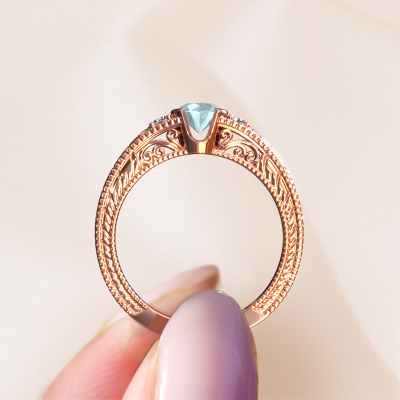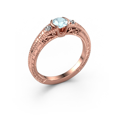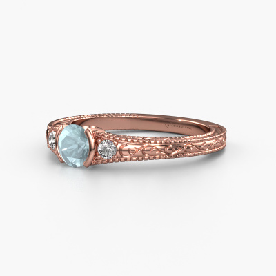 Deze verlovingsring heeft de naam Anamaria. Deze ring, uitgevoerd in 14 Carat rosé goud is gezet met 5 mm aquamarijn. Een bijzondere rosé gouden vintage ring, deze unieke verlovingsring die jouw liefde van je leven zeker laat stralen! En dat is precies waar wij voor gaan. In deze vintage verlovingsring is prachtige aquamarijn verwerkt. Je kunt natuurlijk iedere edelsteen die wij aanbieden hierin laten verwerken. De edelsteen is zorgvuldig geselecteerd, want wij vinden dat op jouw filigraan verlovingsring alleen de mooiste edelsteen mag schitteren, toch? Onze goudsmid vervaardigt jouw verlovingsring in ons eigen atelier, en plaatst de aquamarijn met uiterste precisie in de ring. Vervolgens wordt deze bijgewerkt en gepolijst totdat het resultaat zichtbaar is: de perfecte verlovingsring voor de liefde van jouw leven! Dit juweel wordt speciaal voor jou gemaakt door onze meester goudsmeden in ons eigen atelier.Wellicht is het je opgevallen dat onze prijzen gemiddeld 30% lager liggen dan bij een andere juwelier. En dat terwijl de kwaliteit in de meeste gevallen nog beter is! Dit komt doordat onze goudsmeden je verlovingsring direct in ons eigen atelier vervaardigen. Hierdoor hoeven we geen dure voorraden te hanteren en kunnen we ieder gewenst detail direct op jouw verlovingsring aanbrengen.Ons team is iedere dag weer bezig om nieuwe ontwerpen toe te voegen, in samenwerking met onze designers en goudsmeden wordt gekeken hoe we tot het mooiste ontwerp kunnen komen. Wij doen ons best om tot een zo gevarieerd mogelijk aanbod te komen. Wellicht heb je zelf al een mooi idee van een sieraad dat je ooit wel eens gezien hebt. Neem dan eens vrijblijvend contact met ons op. Wij maken een offerte voor je op waarbij wij vrij zeker zijn dat we wat betreft kwaliteit en prijs jou versteld zullen laten staan.Om het voor jou makkelijker te maken kun je ieder besteld sieraad binnen 30 dagen na aflevering eenvoudig weer retour sturen.